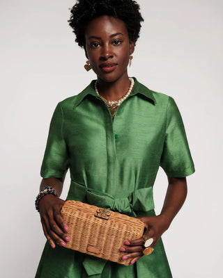 Frances Valentine Slim Pleated Maxi Dress Canopy Green