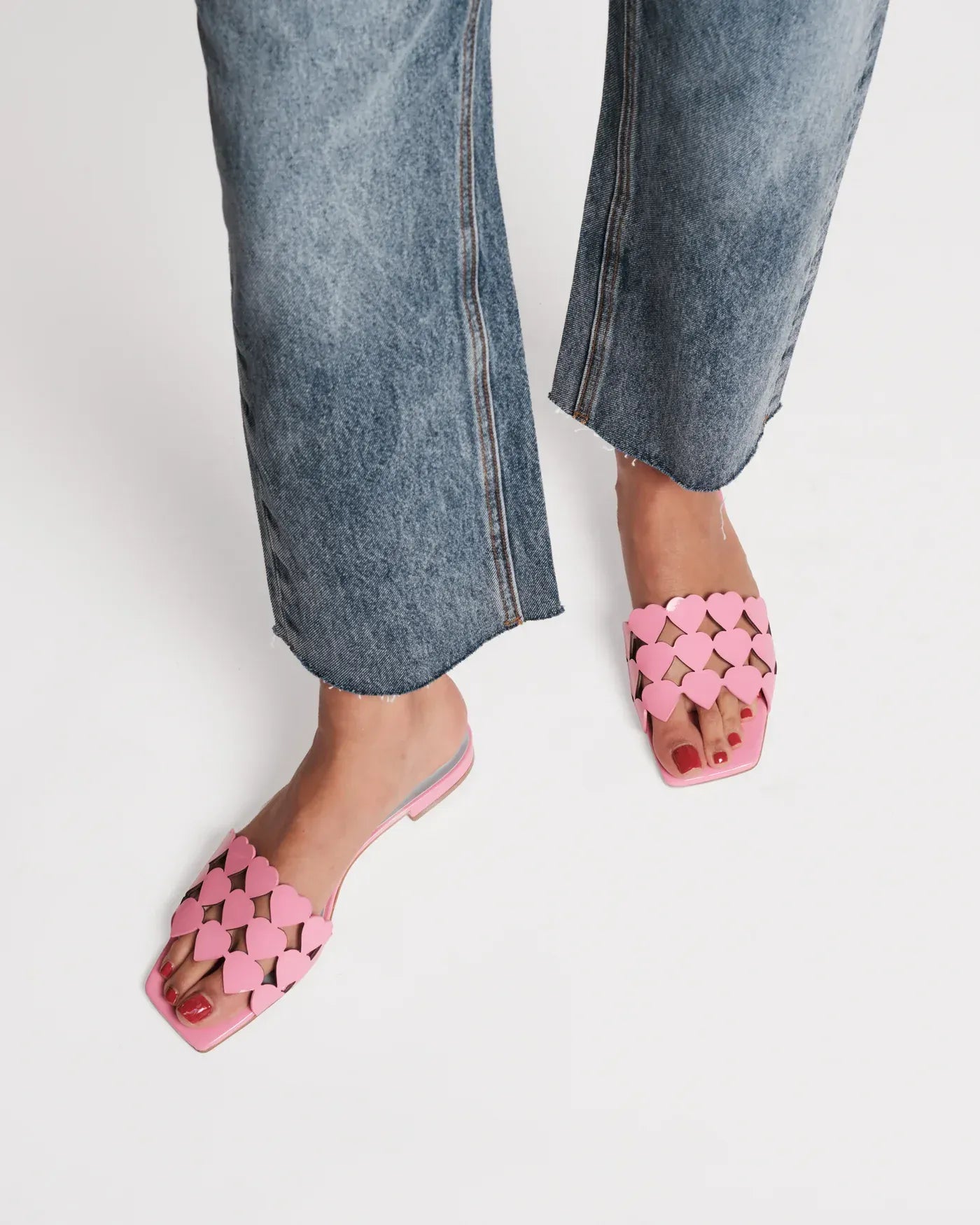 A special edition style for Frances Valentine's 10-year anniversary, these flat slide sandals are crafted with Love. Designed with three rows of leather heart cutouts across the foot, they are easy, charming, and endlessly wearable.