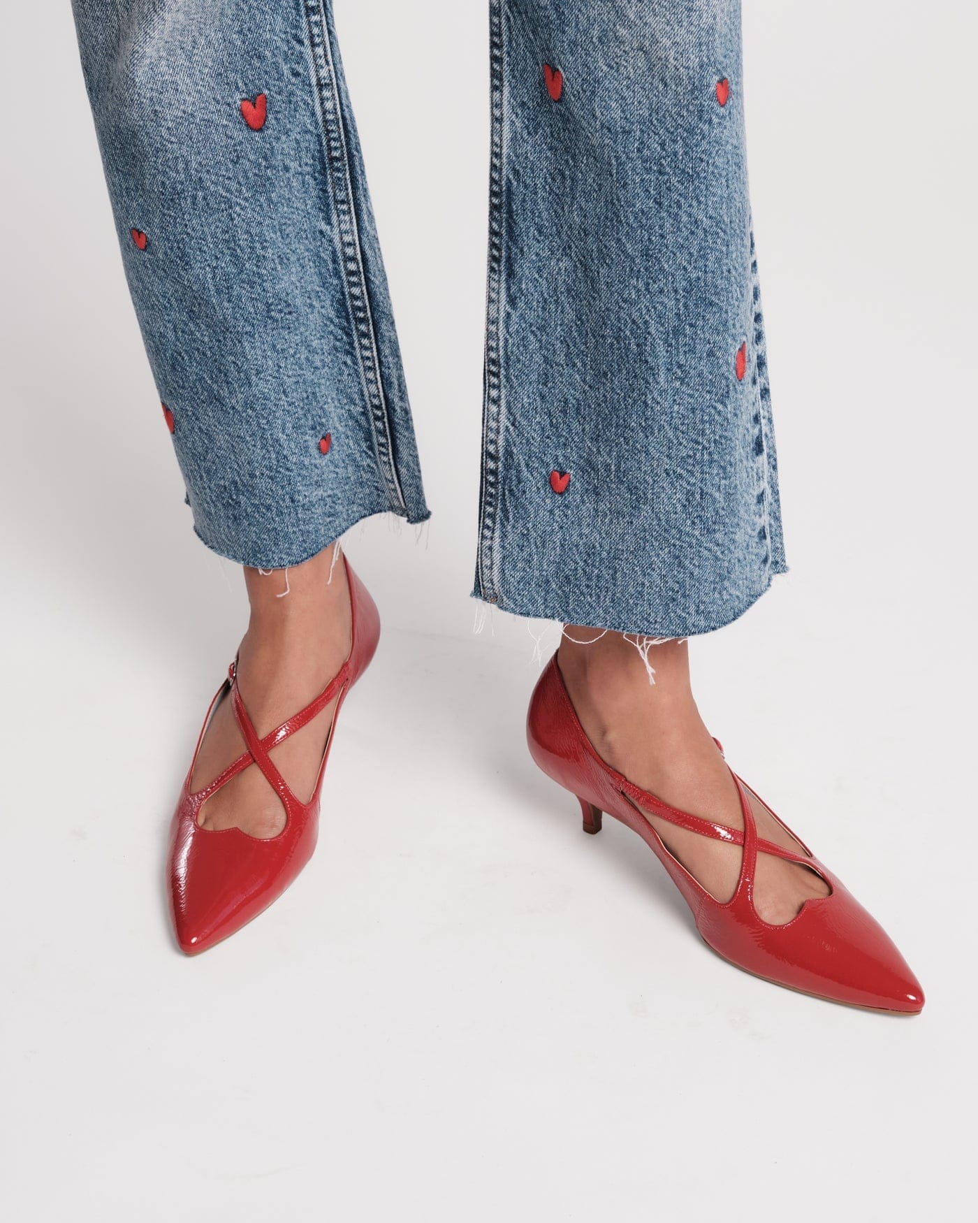 Wear your heart on your feet. These sweetheart kitten heels are a perfect embodiment of vintage-inspired style. Crafted from our signature crinkled leather, this heart-stopping pair features a playful strap designed to form a heart when worn.