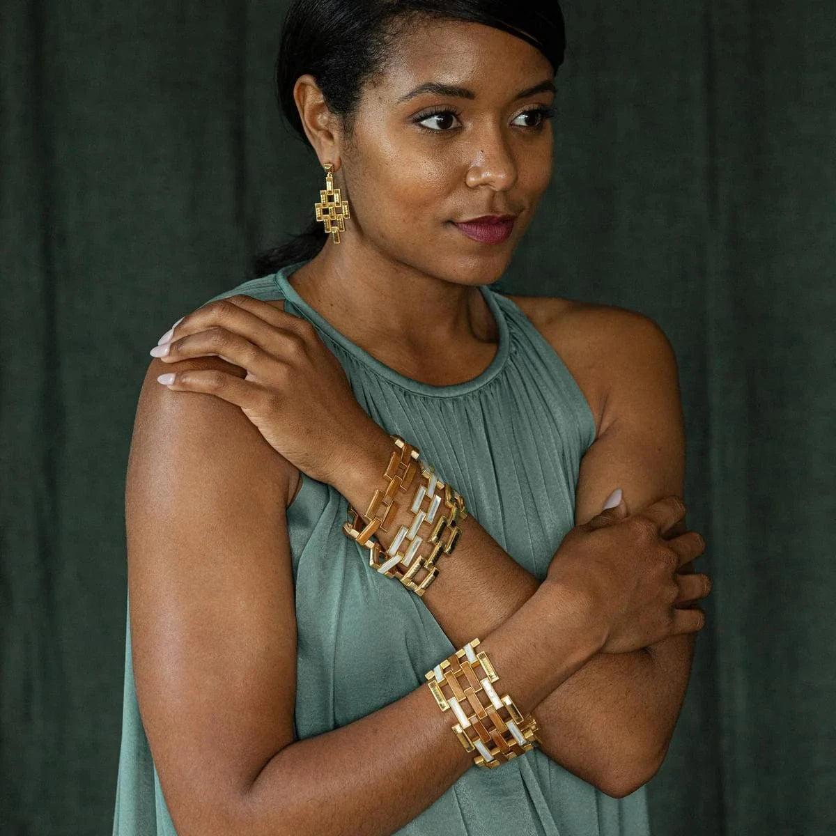 We all have different paths in life; the most important pathways we have to build ourselves with hard work and with a bit of luck (and hopefully we can find gold bricks along the way). Wear this striking bracelet of natural teak wood and gleaming gold as a reminder to stay grounded as you travel along your daily adventures, from Monday meetings to Saturday date night.