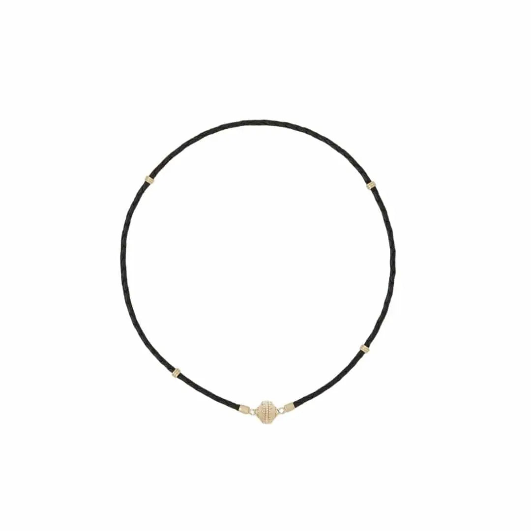 Part of the beloved Aspen Collection, this mini necklace is crafted from a single braided twist of genuine leather and perfectly placed gold ring accents.