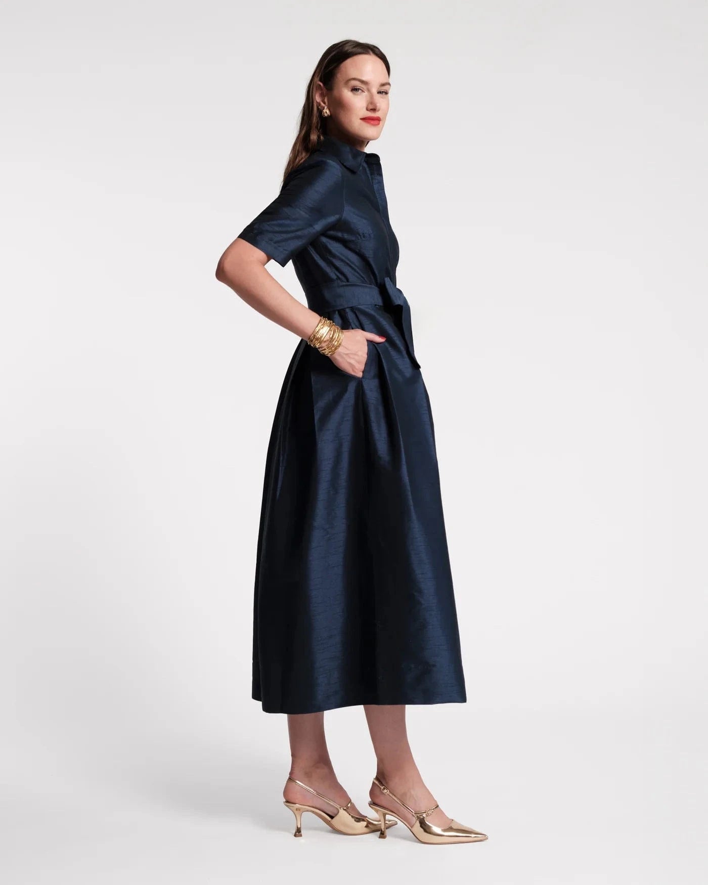 The Bella Maxi Dress combines the best of theirr beloved silhouette with an elevated finish. Cut in luminous silk dupioni, it features a fluid, cascading skirt that brings movement and a touch of luxury. A new twist on the best-selling Lucillie Wrap Dress, this style is refreshed with short cap sleeves, side-seam pockets, and a self-tie belt.