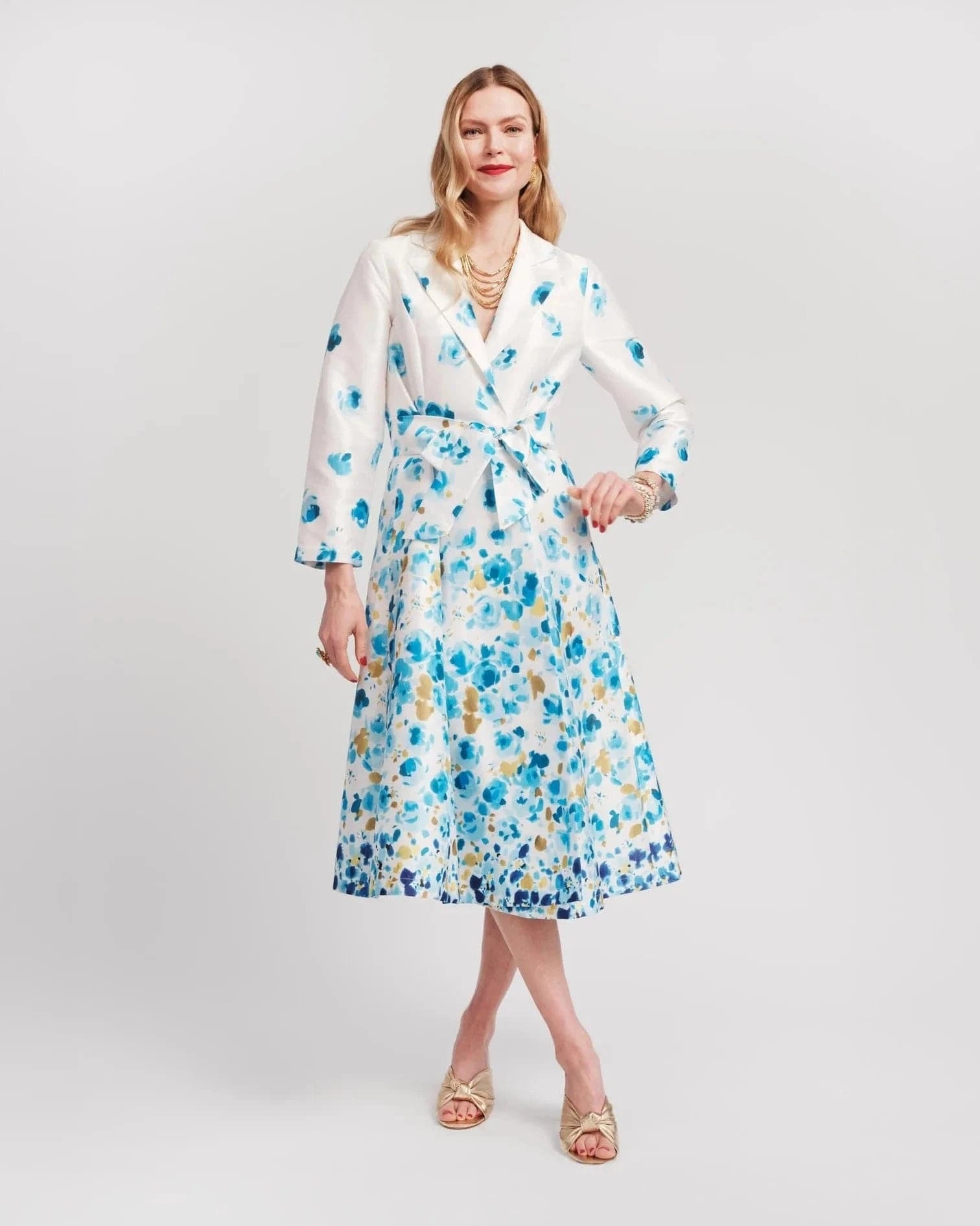 Inspired by style icon Lucille Ball, the Lucille Wrap is a fan-favorite formal midi dress. The dress is constructed from exquisite poly-dupioni, giving it a structured, tailored shape with an elegant drape. The Lucille can be belted in a bow, paired with bottoms or even worn as a jacket. Prepare for compliments.