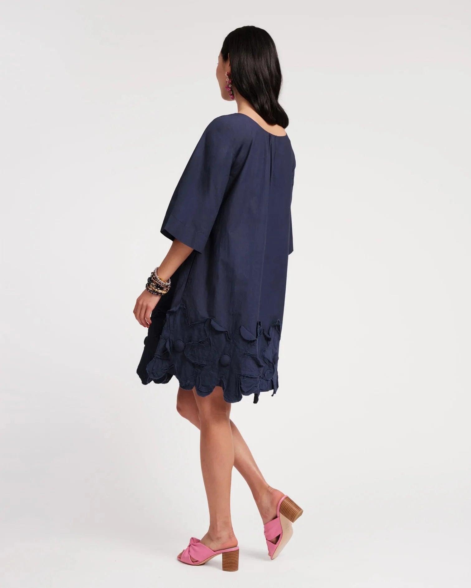Designed for compliments. The Zennia Dress is made for sun-soaked days and spontaneous celebrations. Its airy silhouette glides with ease, while the bell sleeves add a touch of drama that feels both timeless and lighthearted. Along the neckline, delicate ruching creates soft structure and subtle movement, drawing you in without trying too hard. But it’s the floral-appliqué detail—cascading and fluttering along the hem—that sets it apart. Thoughtfully placed and impossible to ignore, this detail gives Zennia its signature charm. It's the kind of dress you reach for when you want to feel instantly put-together, with almost no effort at all.