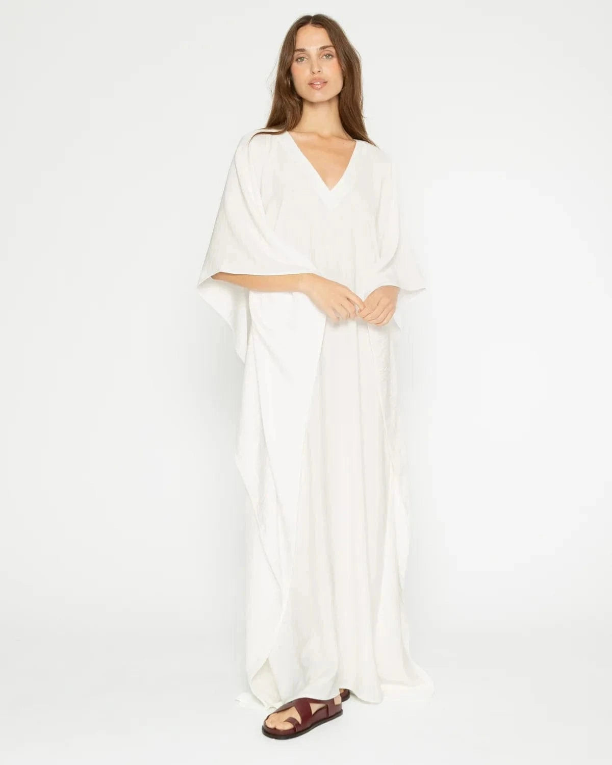 Caftan Dress. Wrinkle-free satin crepe fabric. Caftan is perfect for entertaining by the beach or entertaining at home. Effortless. Stunning.