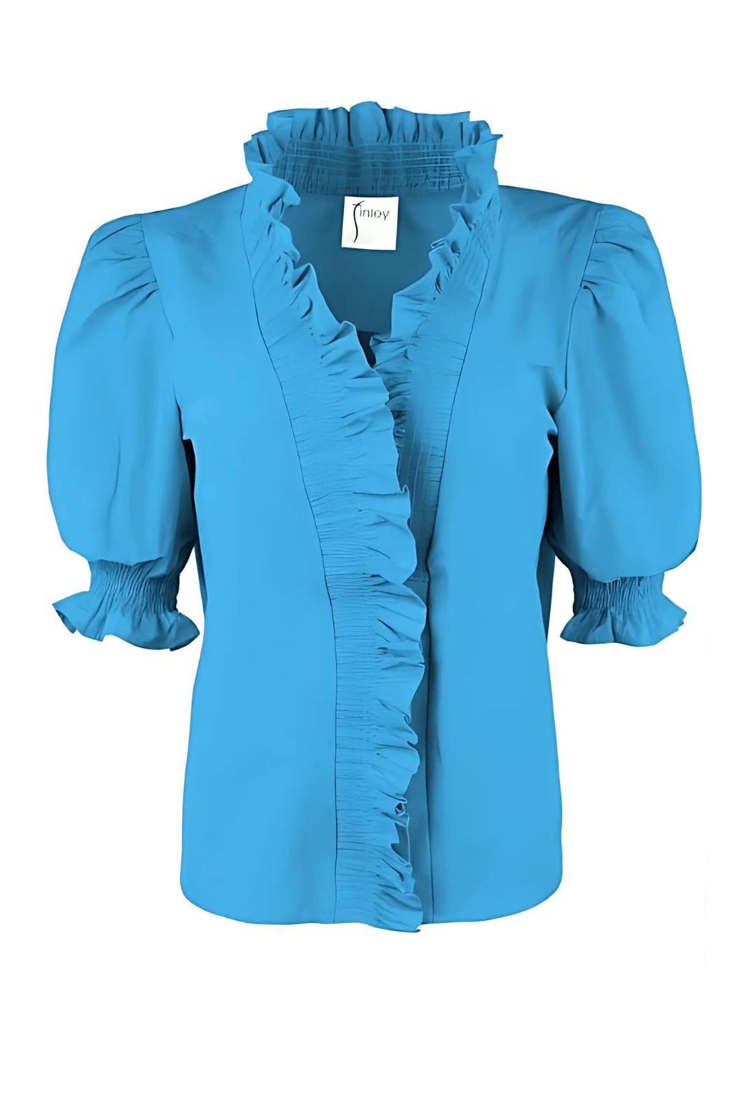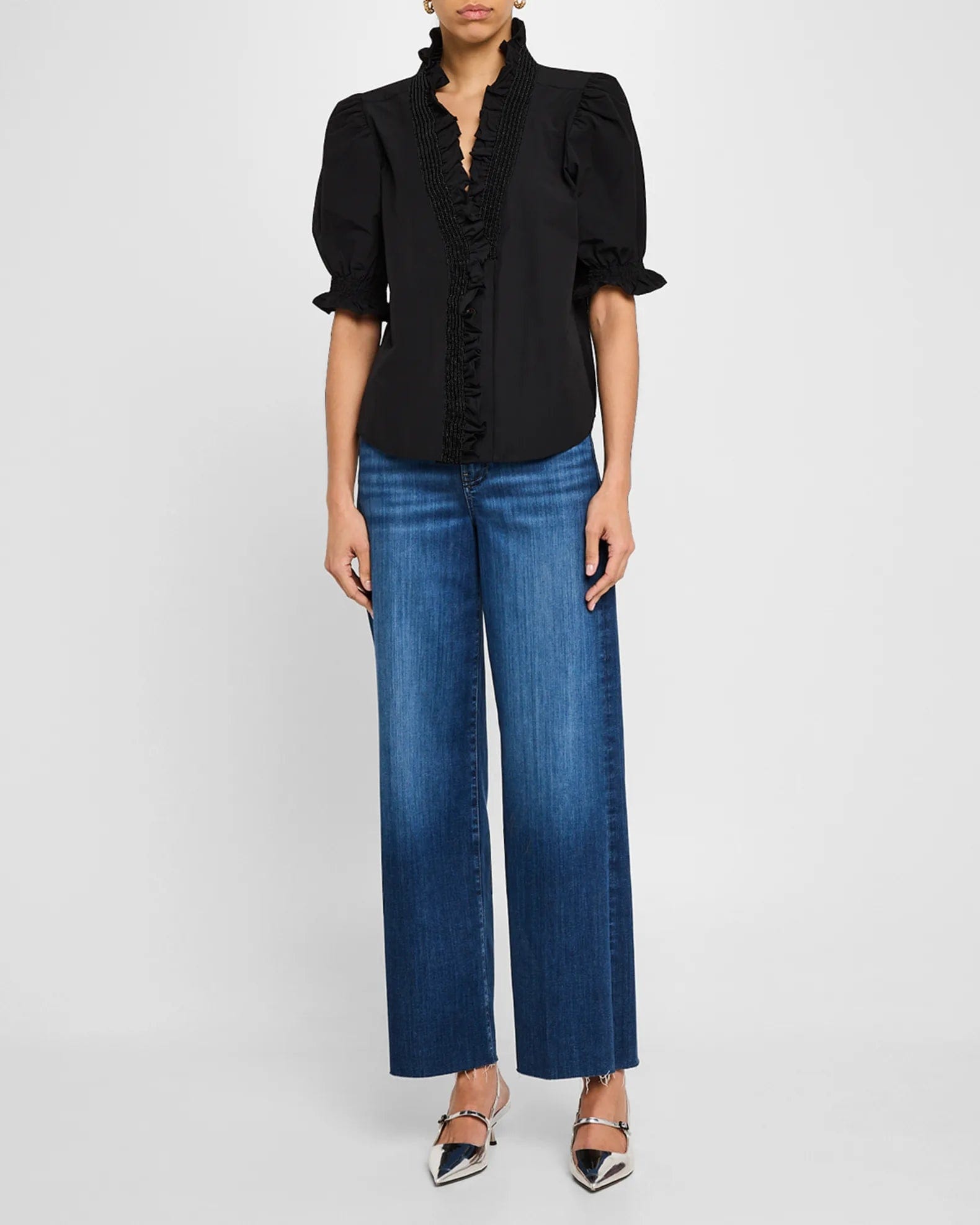 - Finley "Cici" shirt in techy taffeta with topstitched smocking and ruffle trim