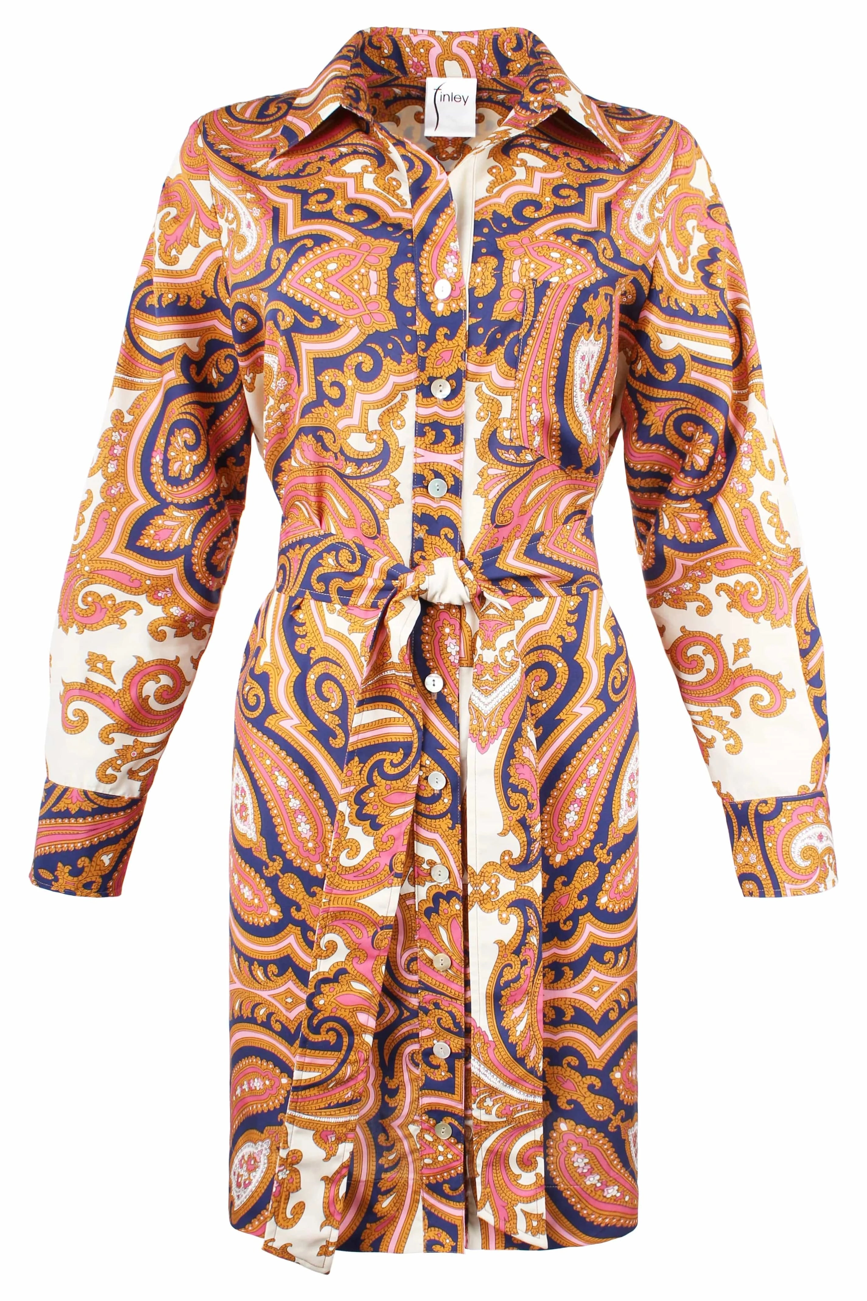 - Finley "Liam" tie-front shirt dress with contrast collar and cuffs
