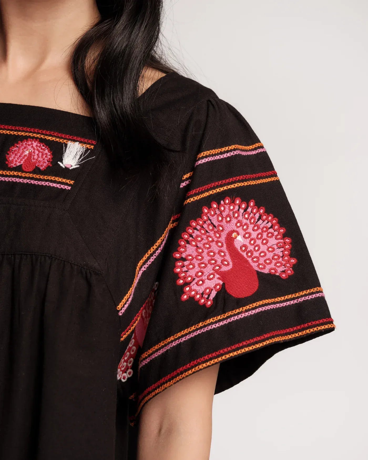 Introducing the new Picnic top, designed to step up your everyday looks with a detailed and dimensional short sleeve. Style the embroidered top with your favorite bottoms, and let its peacocks do the talking.