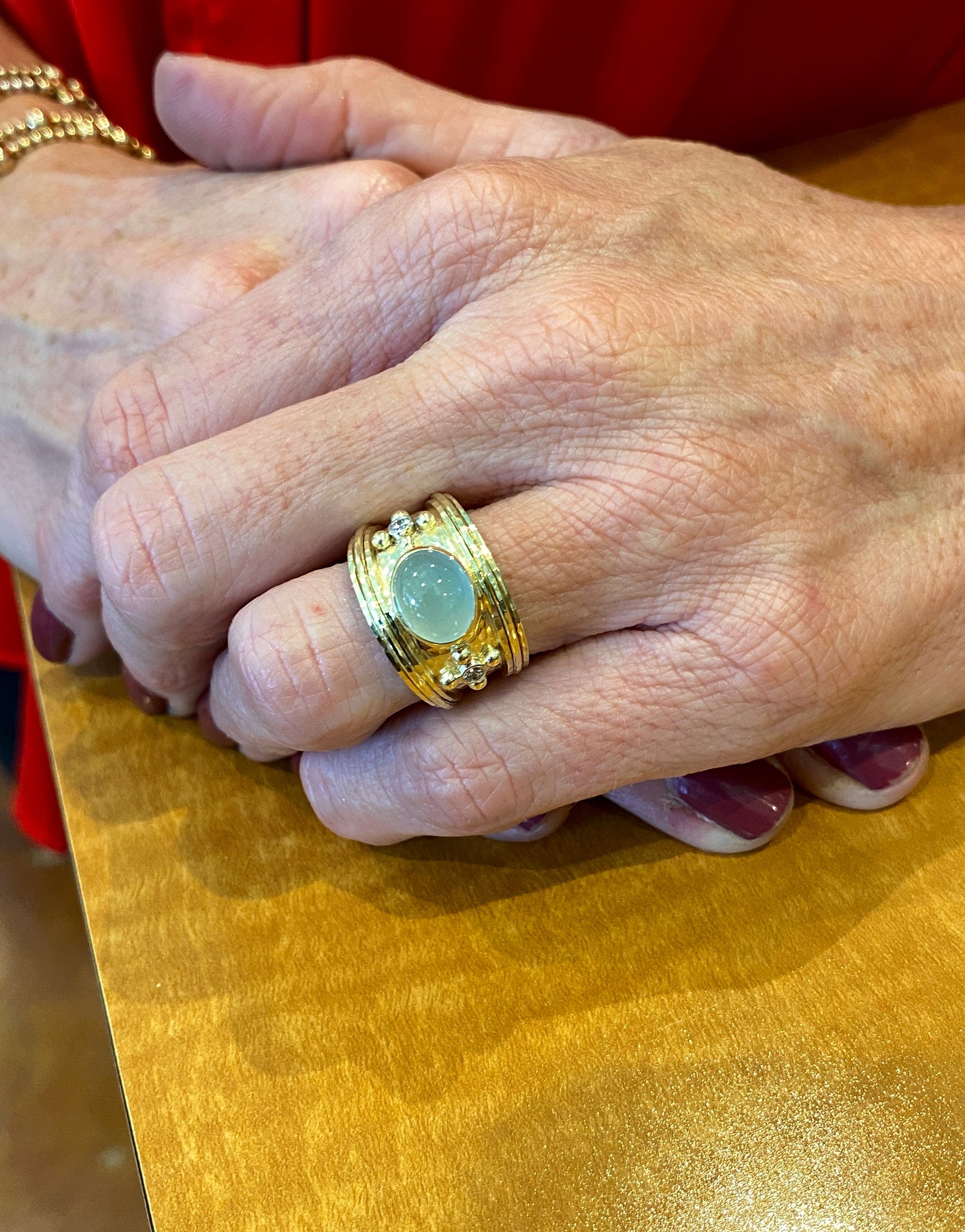 Enjoy this breathtaking Mazza Aquamarine 14kt Gold and Aquamarine Statement Ring. Adorned with a .10ct diamond, it exudes elegance and sophistication. A statement piece for any occasion. This ring is a size 7 1/4. We can either resize it to meet your needs or create a new one.