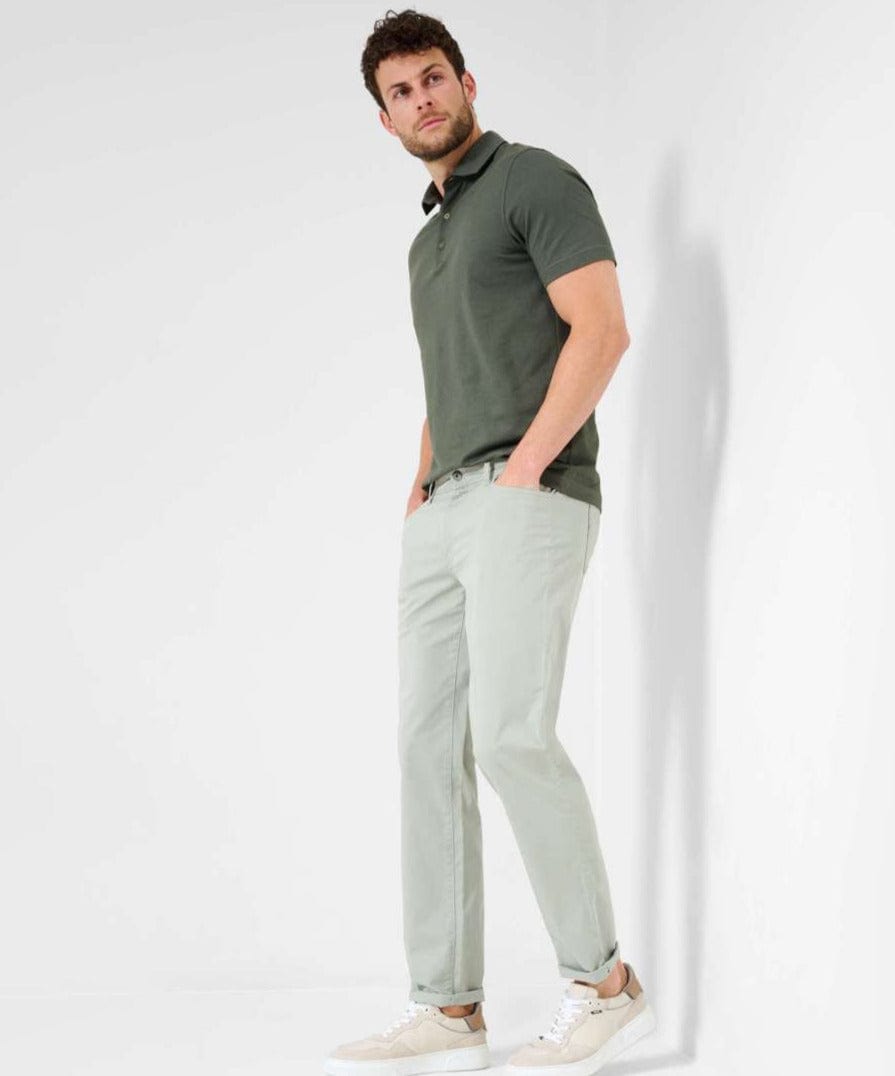The Brax - Cadiz - Color Avocado is a must-have for fashion-conscious and smart men. These timeless five-pocket pants feature a straight fit, regular rise, and straight leg, making them the perfect choice for comfortable sneakers or boots. The sportive look is achieved through the detailed pocket design, decorative rivets, and hot-fix patterns. Experience a new level of lightness with Ultralight technology, as the super-lightweight fabric is both soft and durable. The luxurious shine, soft touch, and flowing drape are thanks to the satin fabric, created through the use of an atlas weave. Enjoy the perfect feel and sustainable, easy-care, and skin-friendly qualities of the cotton mix found in these five-pocket pants.
