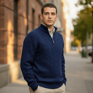 Alan Paine Luxborough Cashmere Cable Knit 1/4 Zip Sweater