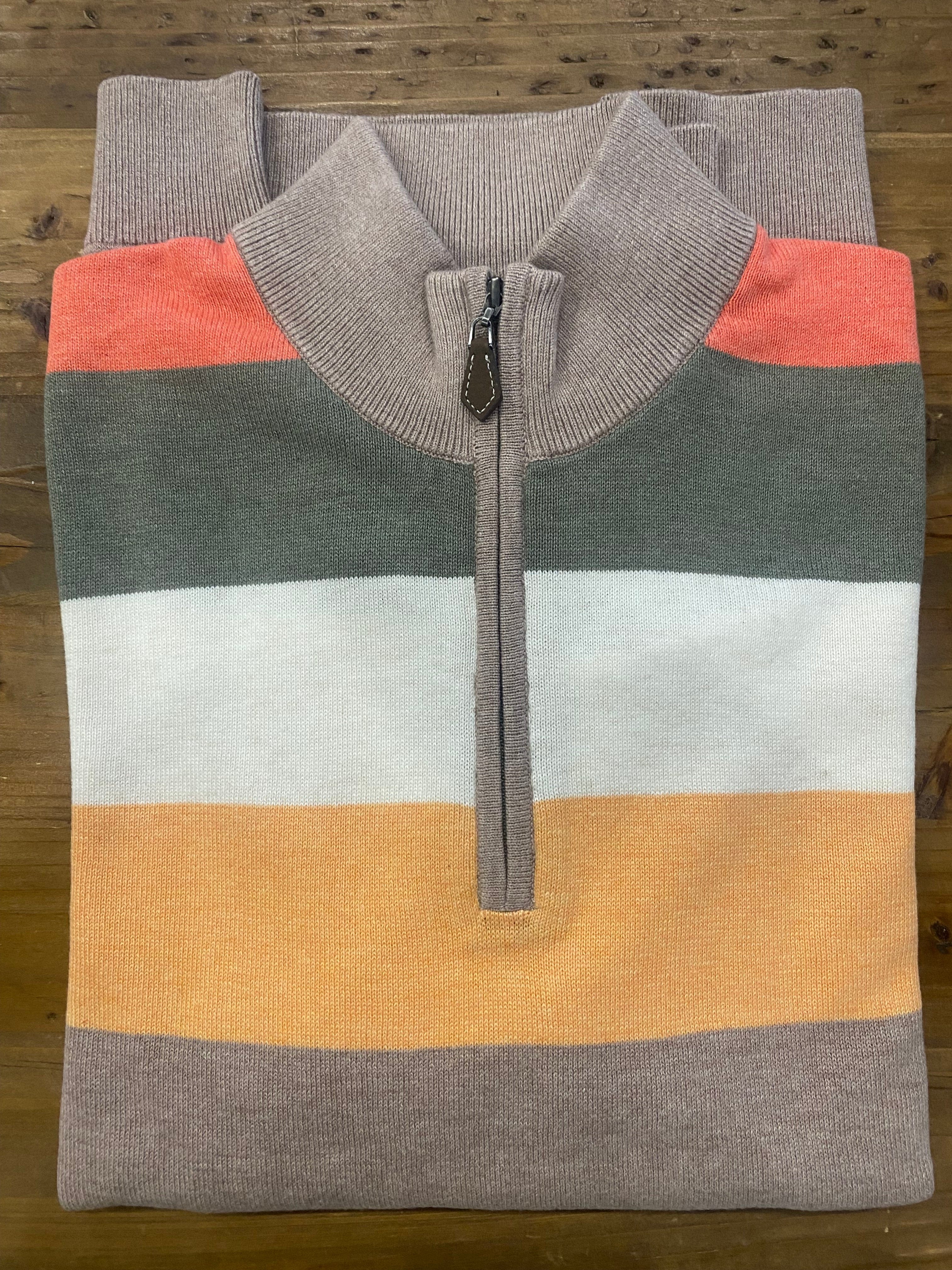 Bring sophistication to your spring wardrobe with the Alan Paine Trowbridge 1/4 Zip Sweater. This exclusive piece boasts a sleek updated fit and a mock neck design, elevated by wide stripes that add a touch of color.