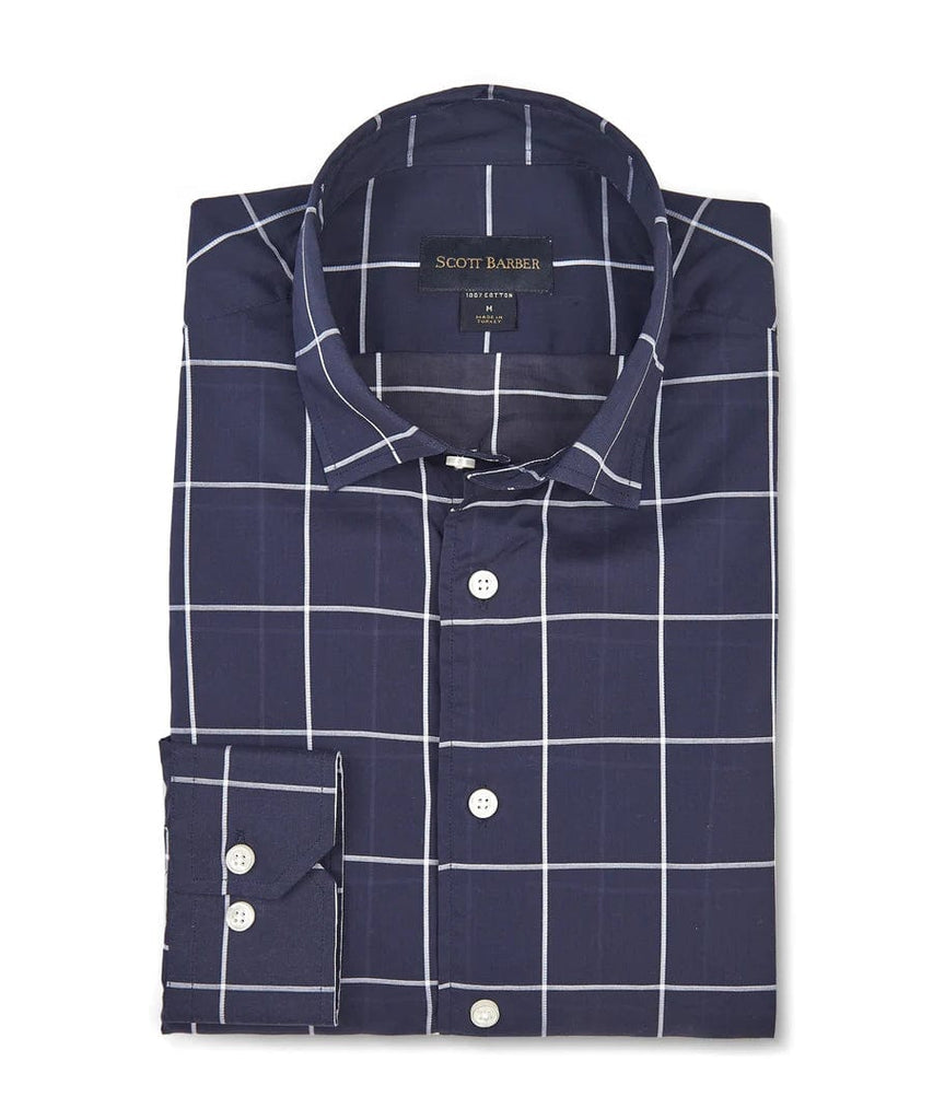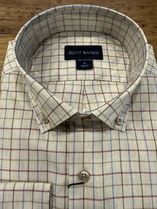 Scott Barber Windowpane Shirt Red, Blue Stripes