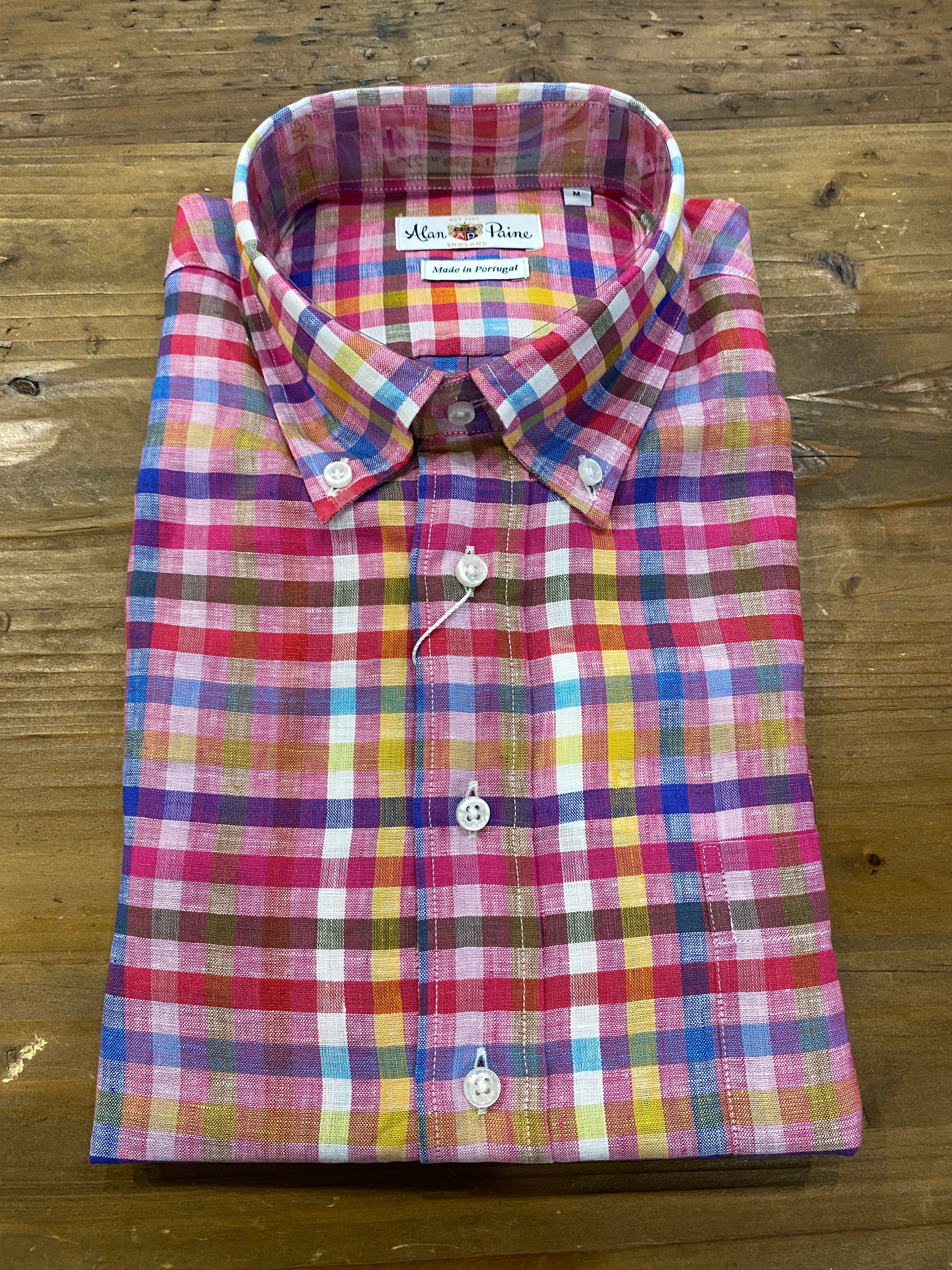 Alan Paine's new Spring Linen Shirt has a button down collar and a subtle chest pocket to elevate your look. The perfect blend of classic and contemporary, this shirt boasts a refreshing palette of spring colors that will add a touch of sophistication to any outfit.