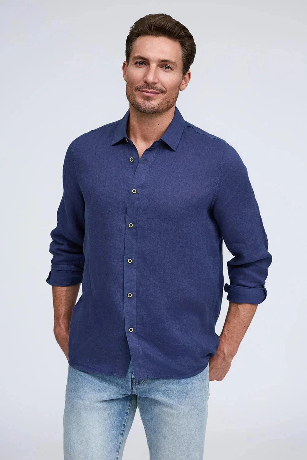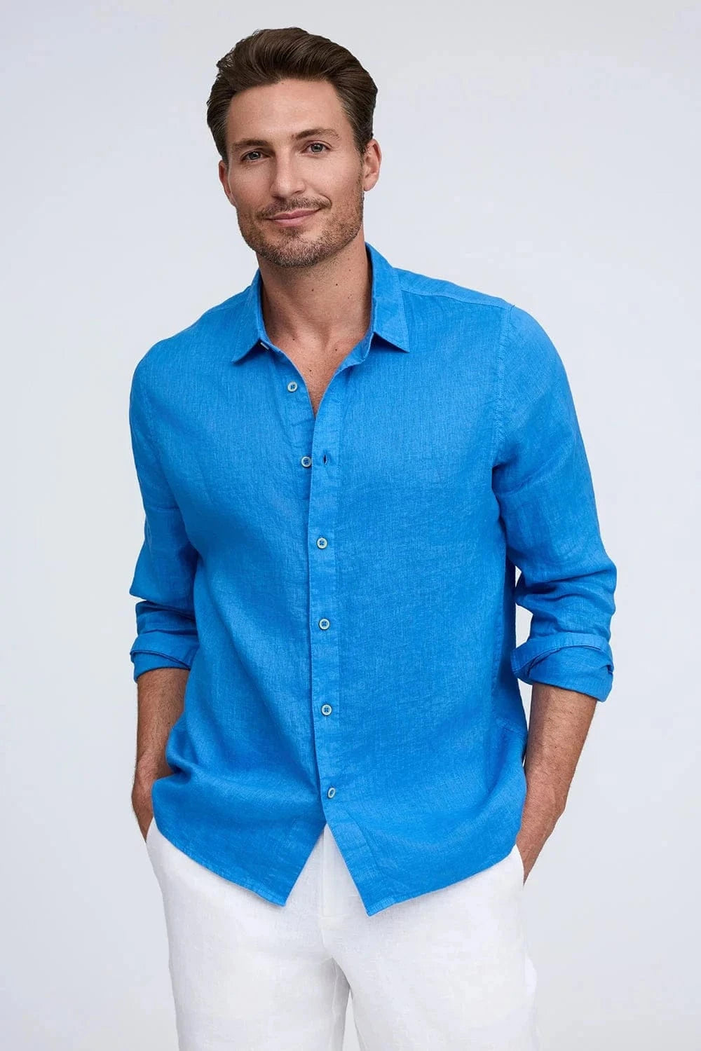 Our one-of-a-kind, must-have summer shirt for men, The Brayden, is made from our special 100% linen that's been sun-baked to perfection. This lightweight and breathable material will keep you cool and dashing. Rock the casual vibe by wearing it untucked or jazz up your night out with our Jasper or Theo pants - in a vibrant, tropical-inspired color scheme.