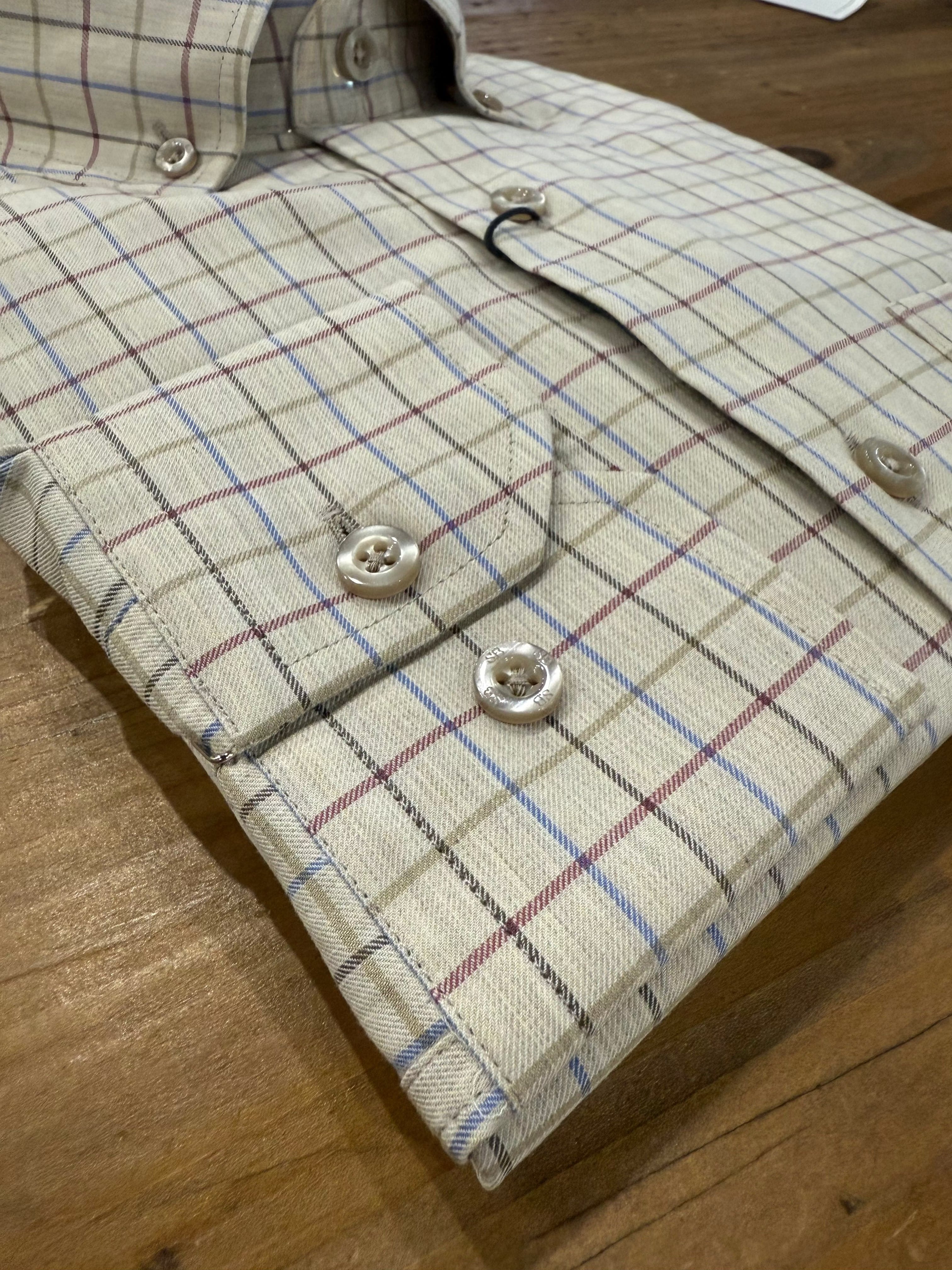 Fine 60/1 Compact Melange Twill, in a fresh seasonal pattern.