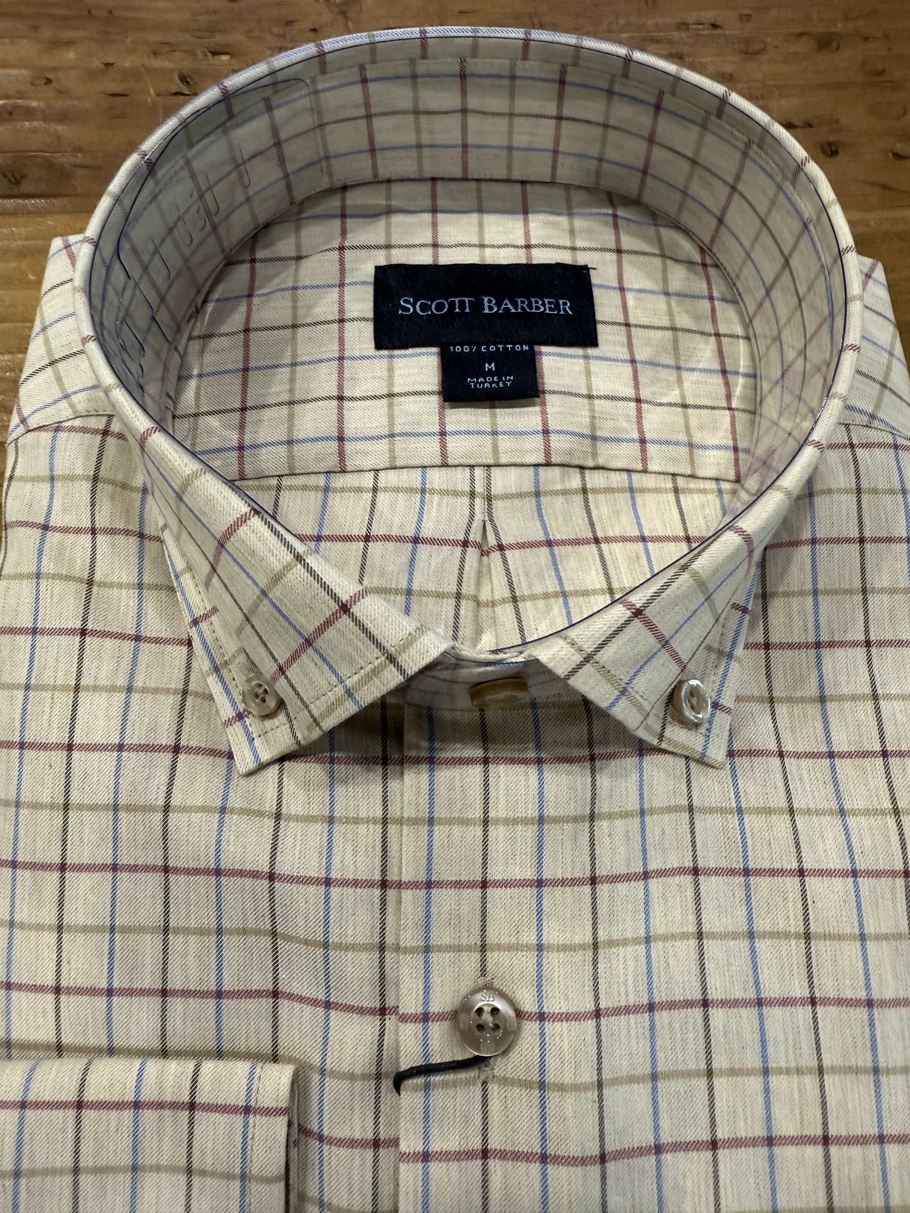 Scott Barber Windowpane Melange Twill Long Sleeve Shirt