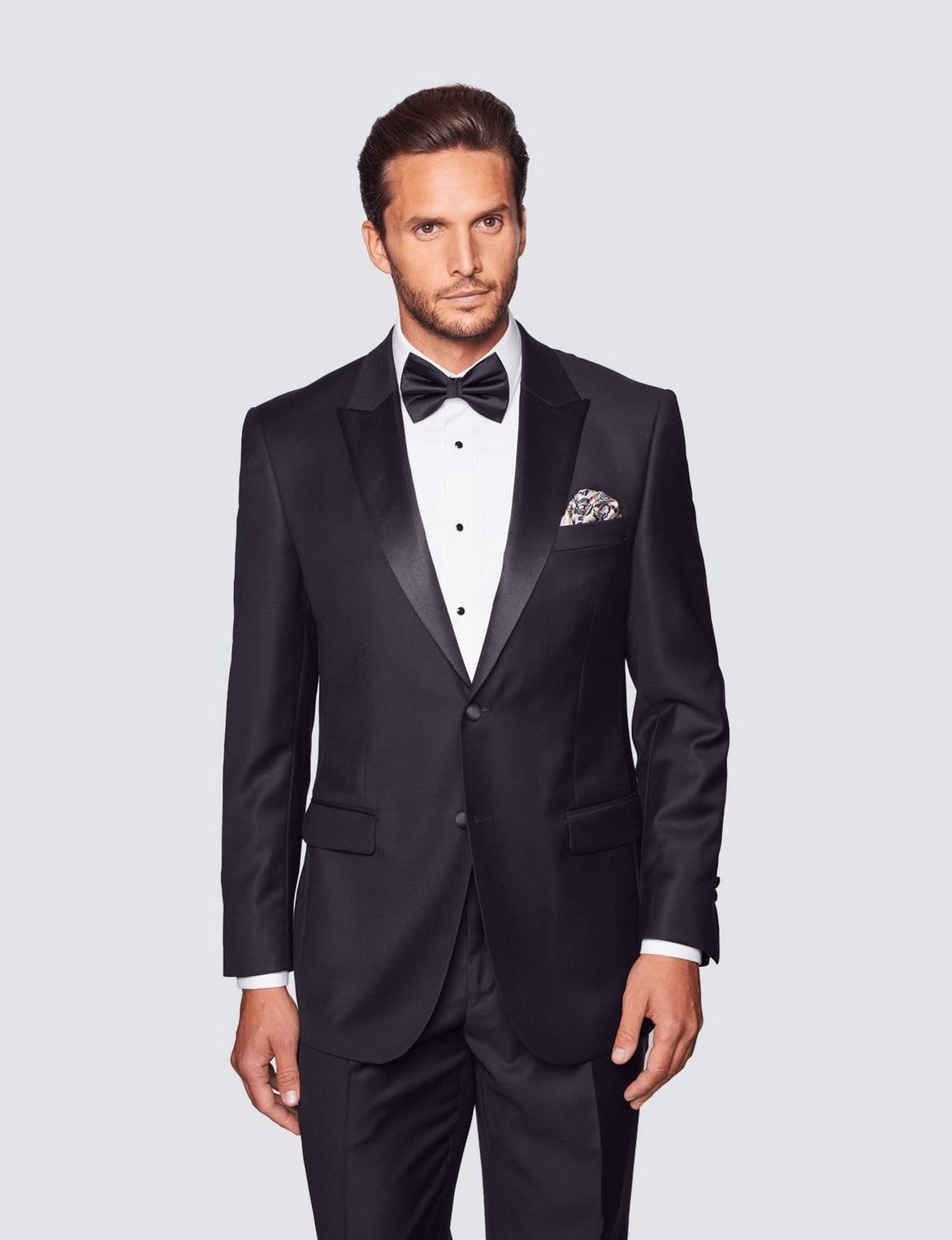 The Brookwood Tuxedo has a timeless sophistication, crafted with black Reda wool fabric and a sleek satin trim. Additional sizes available, please let us know what you need.