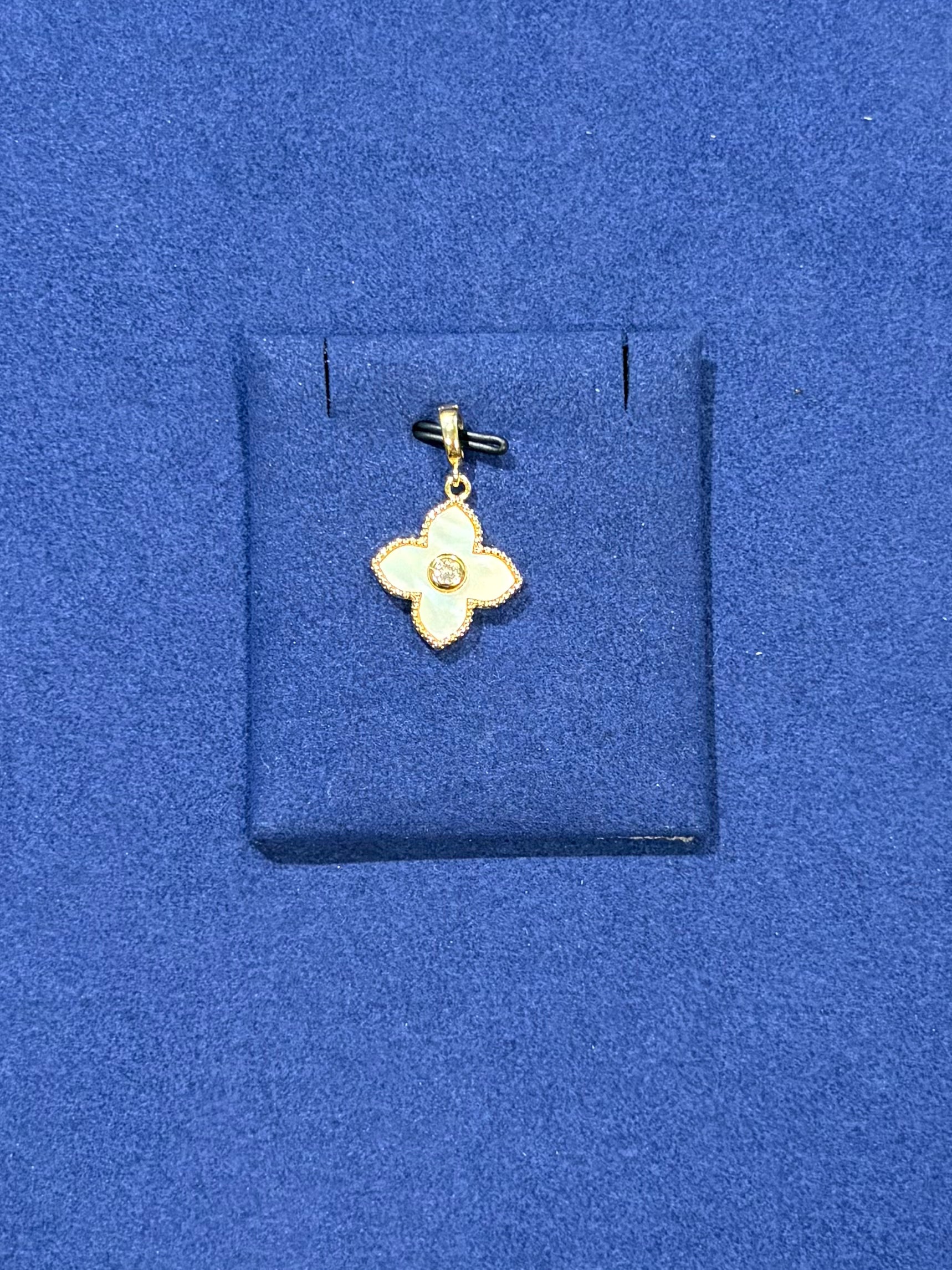 This classic gold-plated charm features a mother of pearl flower design.