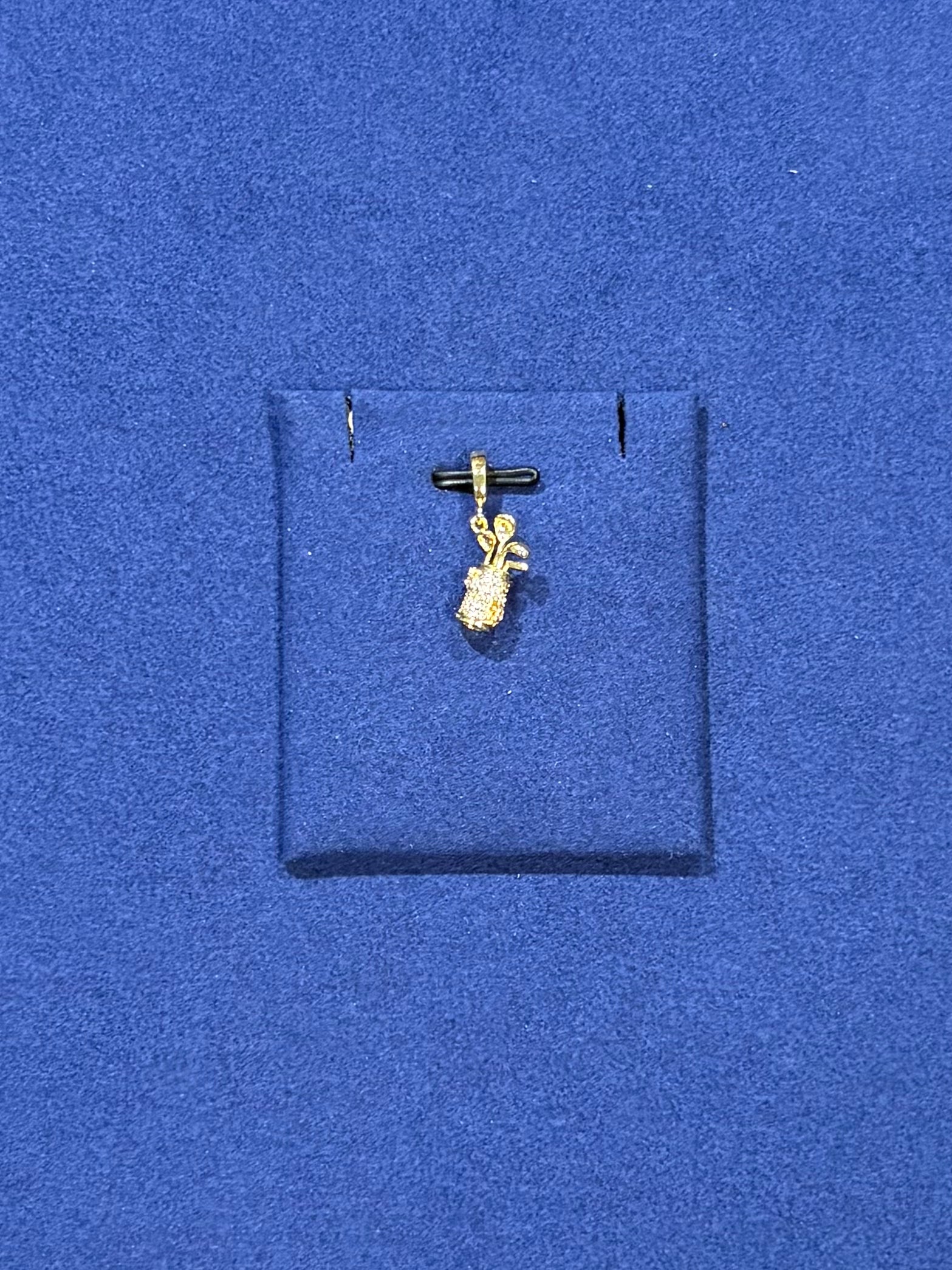 This classic gold-plated charm features golf clubs with clear stone accents.