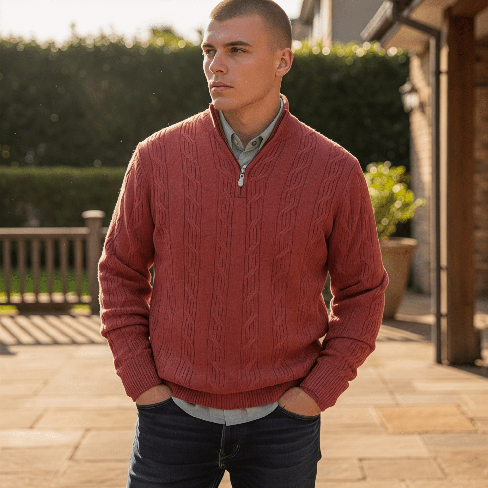 Alan Paine Luxborough Cashmere Cable Knit 1/4 Zip Sweater