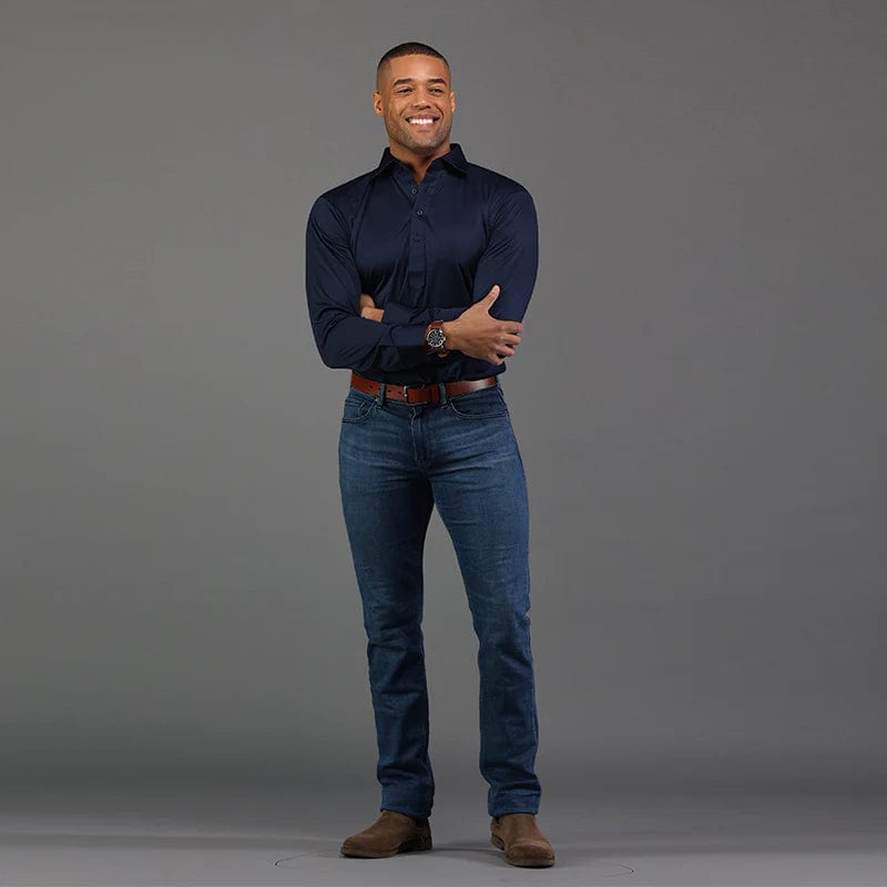 Crafted for optimal comfort and classic style, the versatile Long Sleeve Semi-Spread Collar Polo is an elegant addition to any wardrobe. Boasting a tailored semi-spread dress collar and 4-way stretch construction, this shirt omits the fuss of a formal dress shirt while still embodying a timeless, sophisticated look. Layer it with colors like a cozy sweater or accessorize with a tie and blazer for an upmarket ensemble that will take you from work to date nights and even Zoom calls. An indisputable wardrobe upgrade, this polo perfectly encapsulates the best of smart casual dressing.