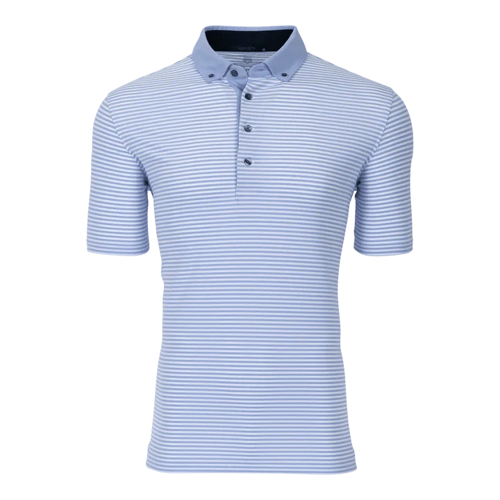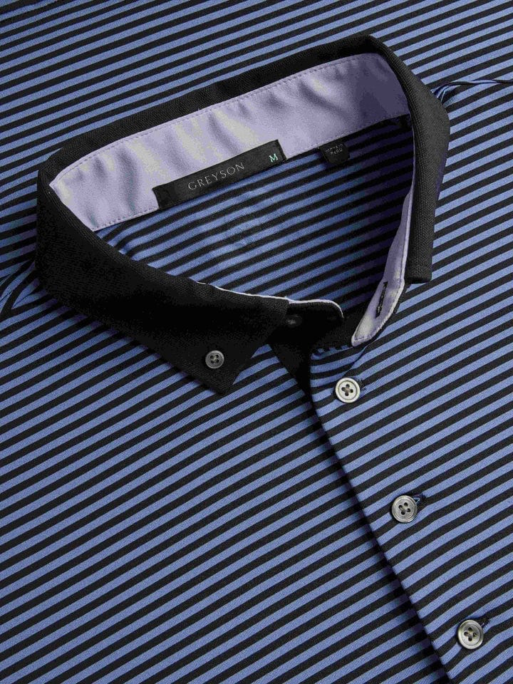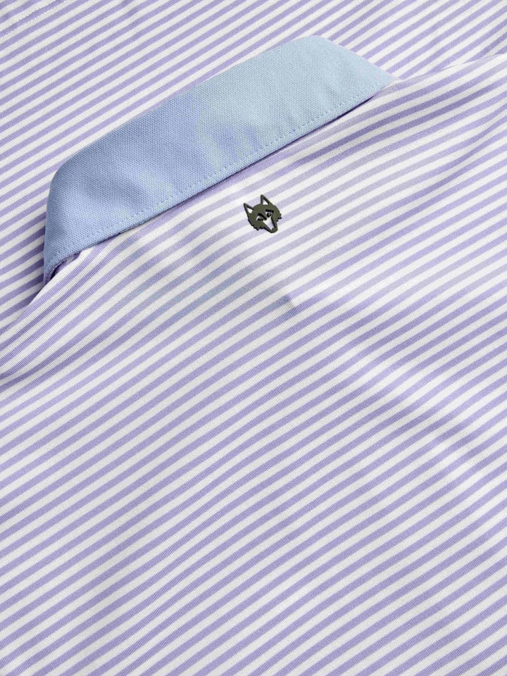 PRODUCT DETAILS This mini feed stripe polo features a four button placket as well as a contrast collar. Constructed from a poly blend fabric for ultimate comfort and performance. The Quogue golf polo offers plenty of stretch and breathability for the on and off the golf course. Finished with the signature Wolf yoke on the back. Available in seasonal colors. Antimicrobial | Water wicking | 8-way stretch | Quick dry | UV-A + UV-B protectant | No fade 90% Polyester | 10% Spandex Imported
