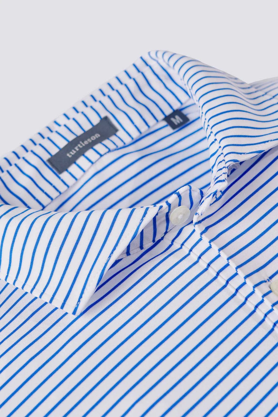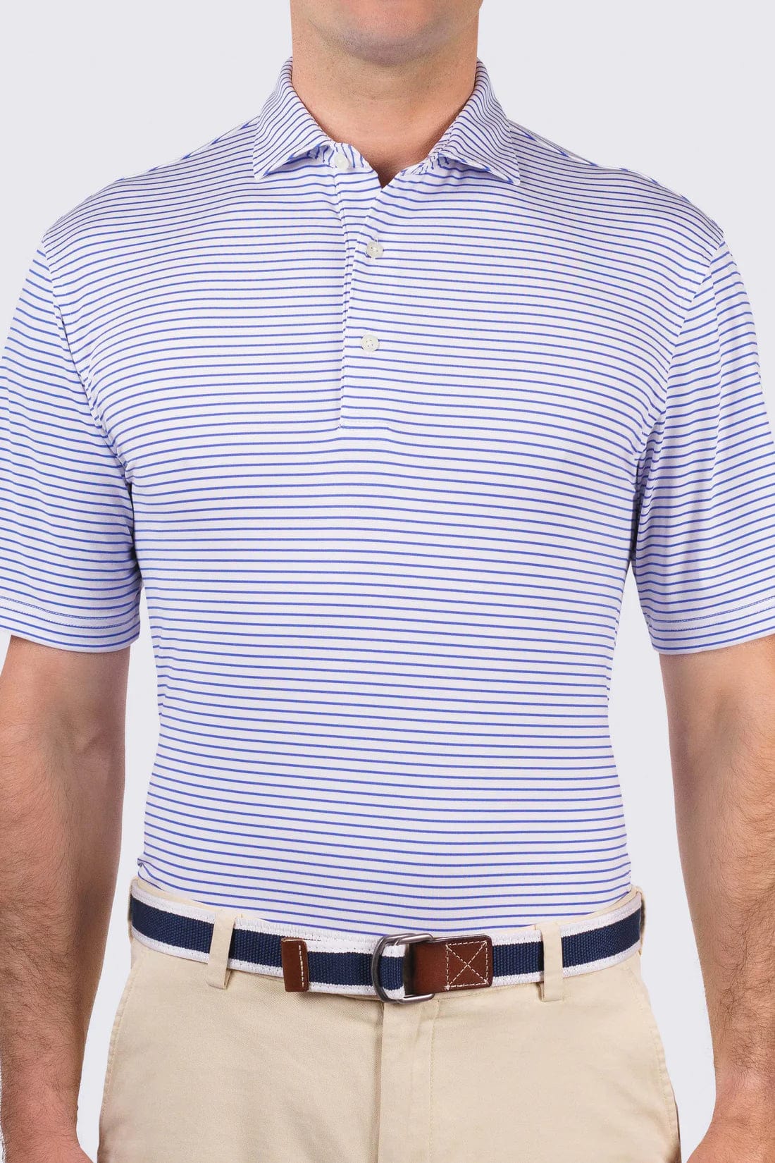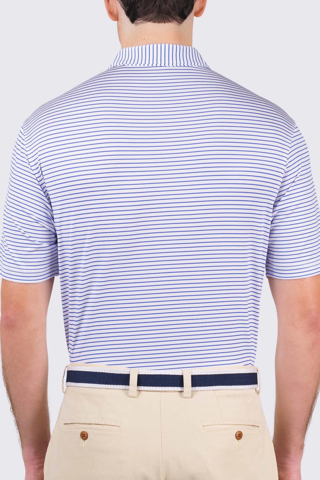 A classic stripe will never let you down, and the Dylan Stripe Performance Polo is no exception. Featuring thin colored stripes on a white background, this polo is endowed with Turtleson’s famous four-way stretch and moisture-wicking properties, giving you a versatile choice whether you’re heading on a weekend trip or rolling a few putts on the practice green.