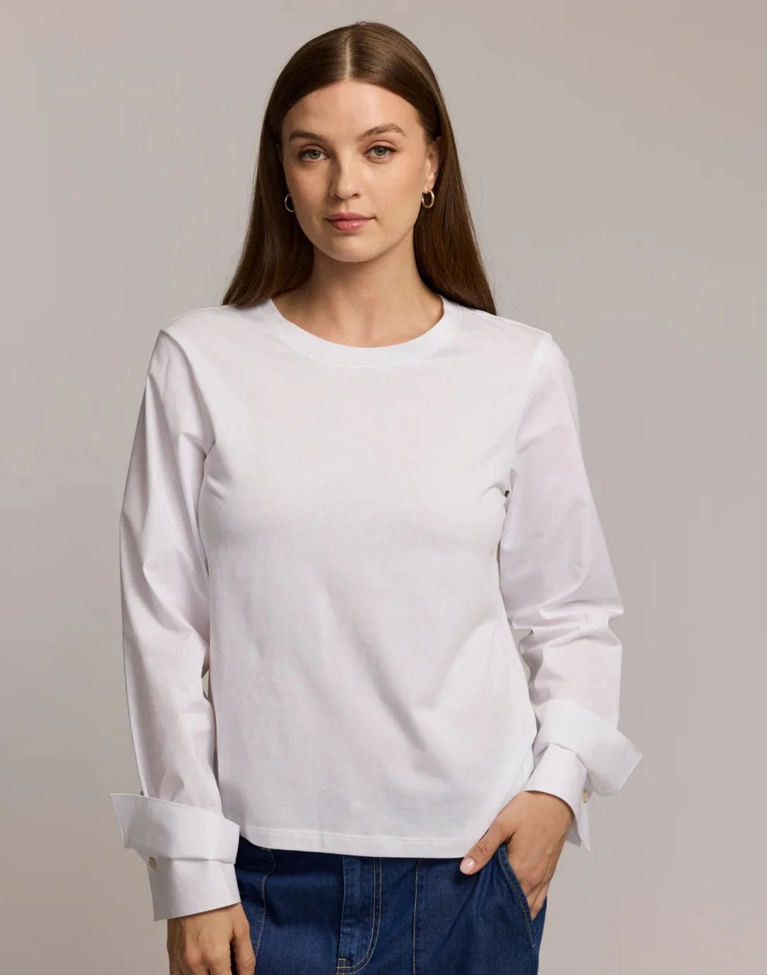 A refined blend of structure and stretch. Hinson's Foundation Layers combine crisp woven detailing with soft knit comfort—made to layer effortlessly, yet elevated enough to wear on their own.