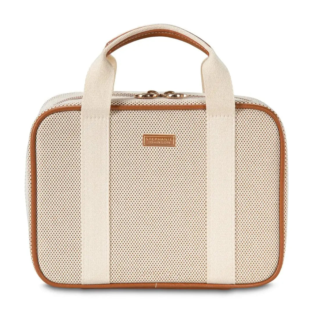 This easy-to-organize travel-friendly makeup kit has two snap-out mesh pouches, a removable toiletry pouch and a clear zip pocket.