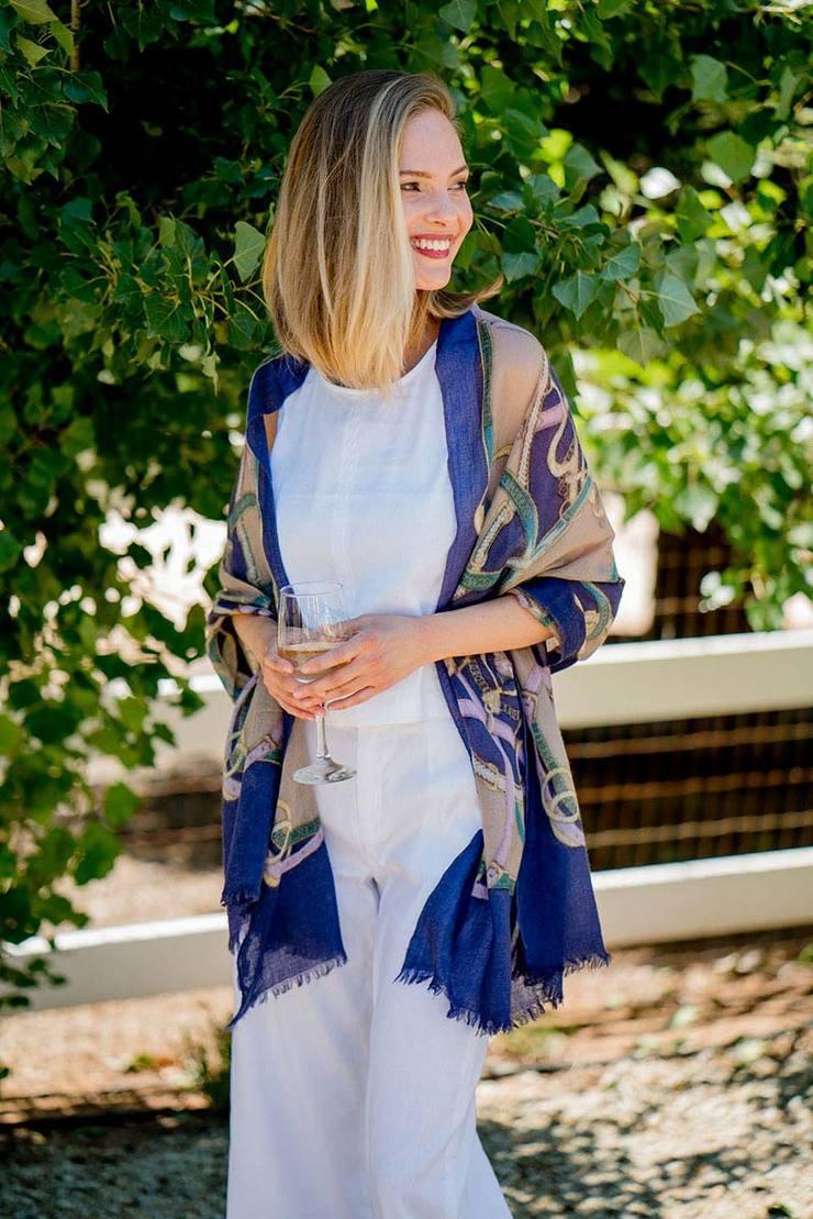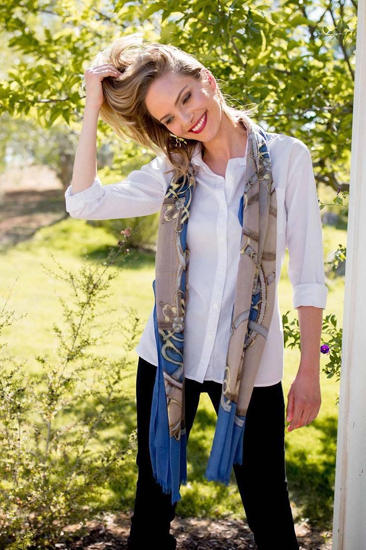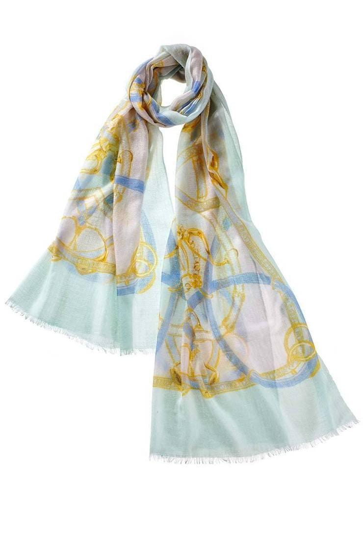 Taken from the Italian word for belt, our featherweight cashmere Cinta Scarf is a perennial favorite that features a classic equestrian design with interlocking belts and stirrups. Woven in a delicate diamond weave and printed in lustrous colors, it is soft, light, and easy to wear.