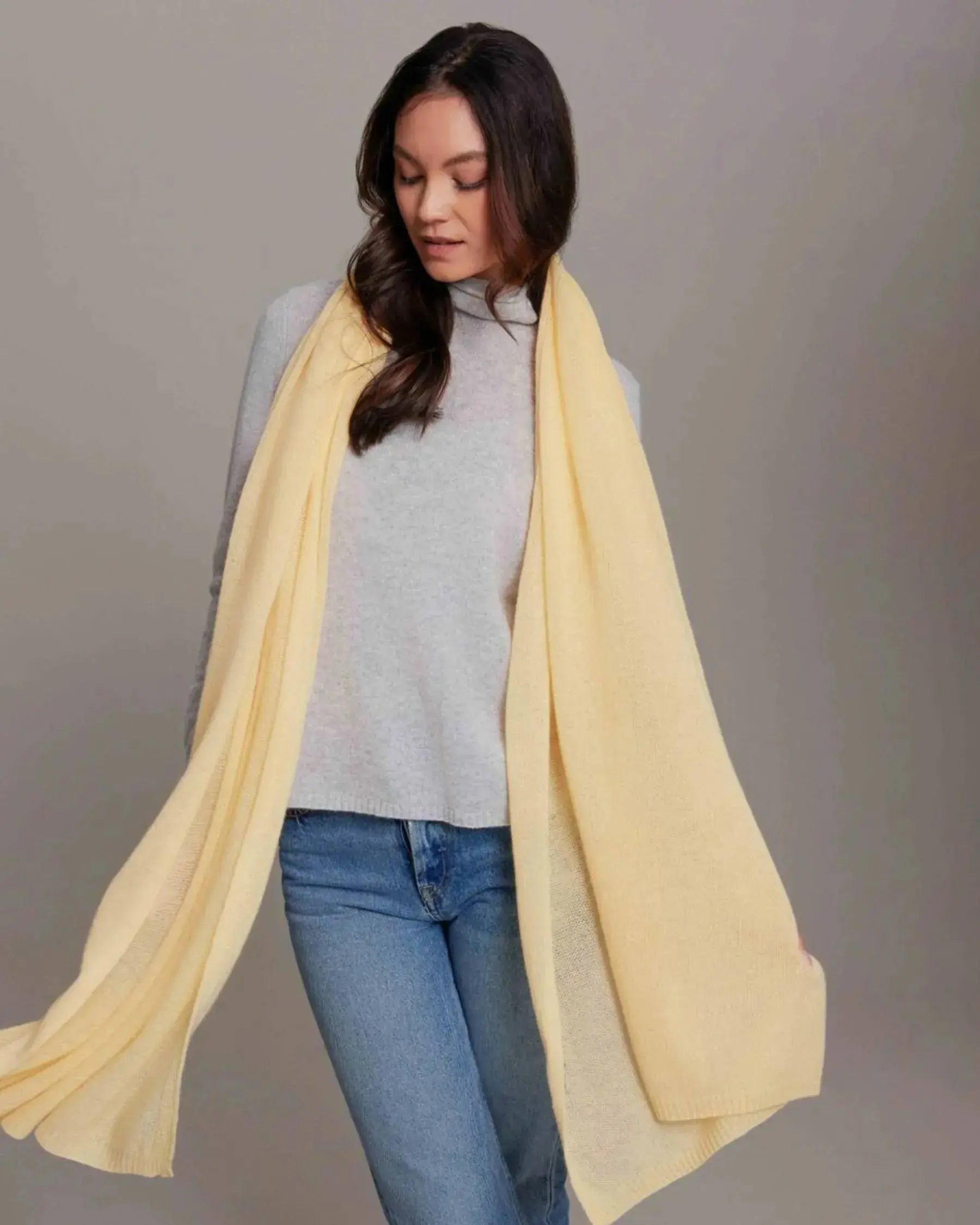 The Light Weight Travel Wrap is a sophisticated addition to any wardrobe. Easily worn as a wrap or a scarf, it can be used on many occasions to add a pop of color to any outfit. Perfect for travel.