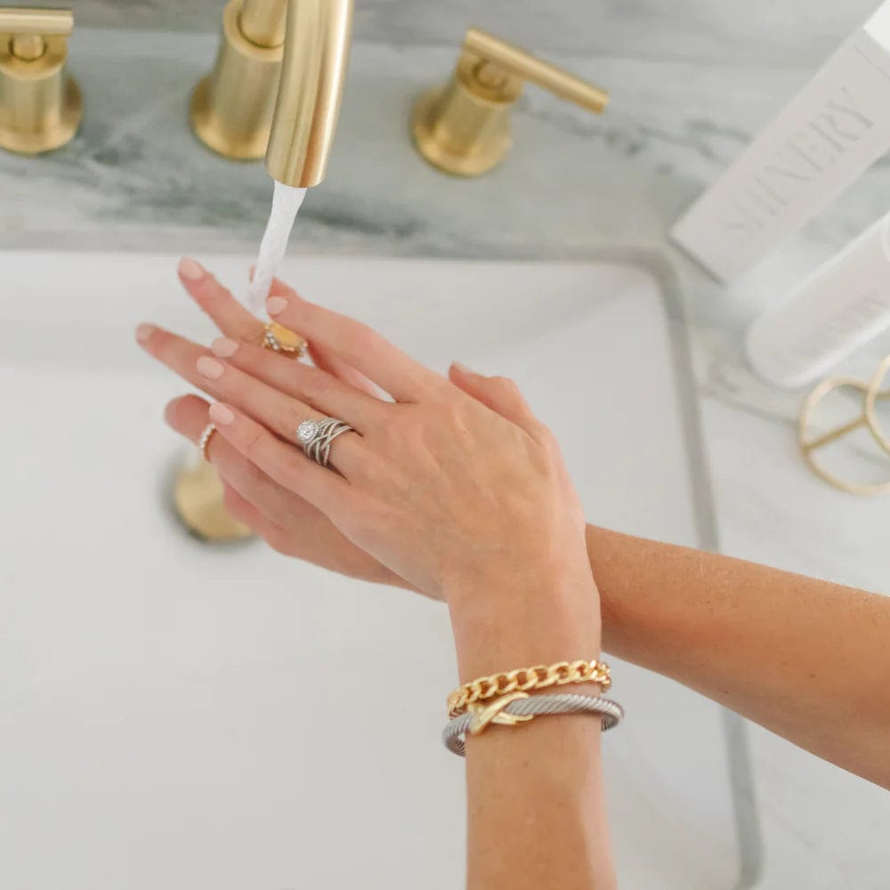 It is as easy as washing your hands. Simply wash your hands, paying specific attention to your jewelry. The plant-based surfactants remove the dirt and oils from your jewelry and are washed away with water.