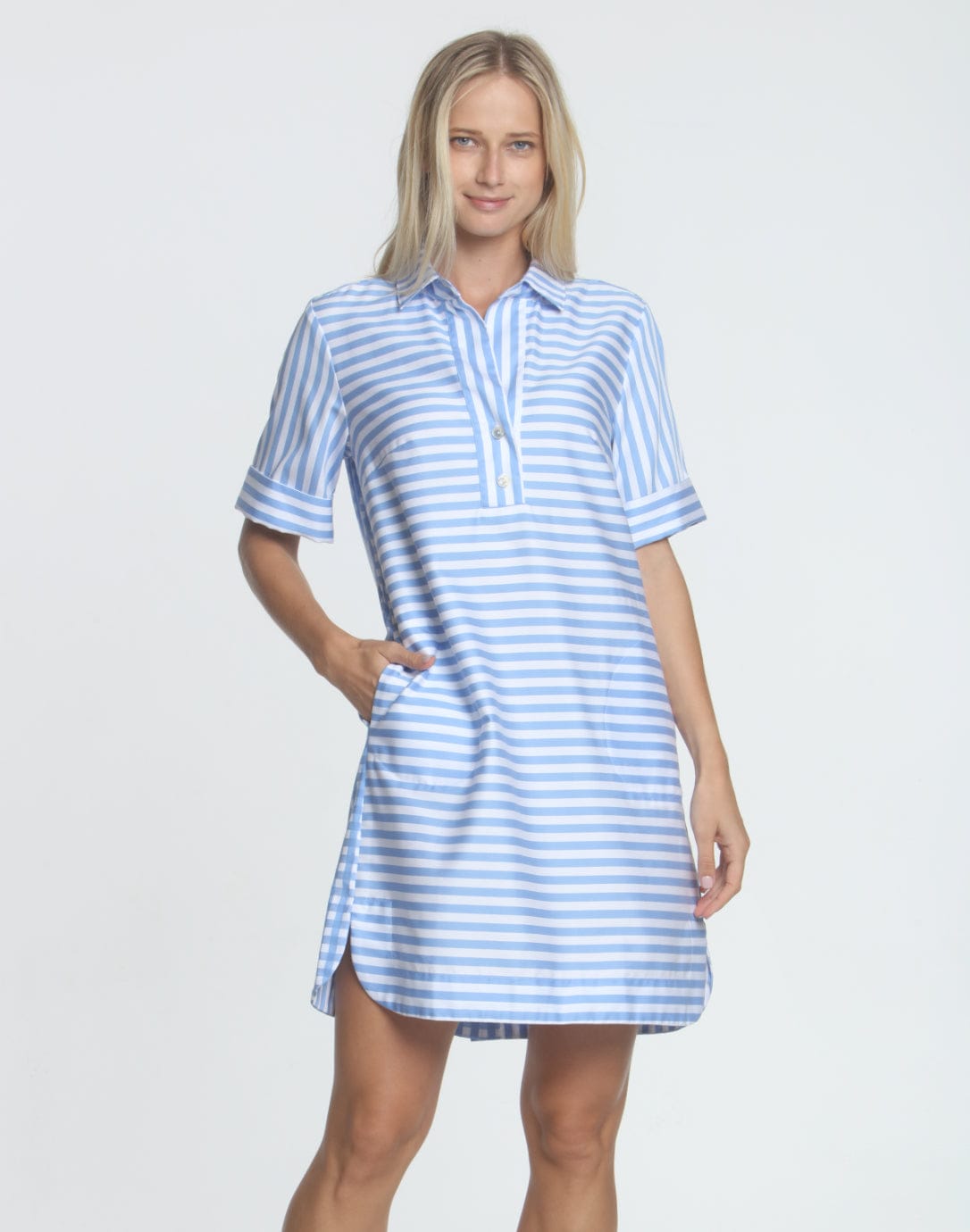 Looking forward to brighter and warmer days, this stripe and color coordinated gingham Aileen dress in short sleeves is your perfect companion.