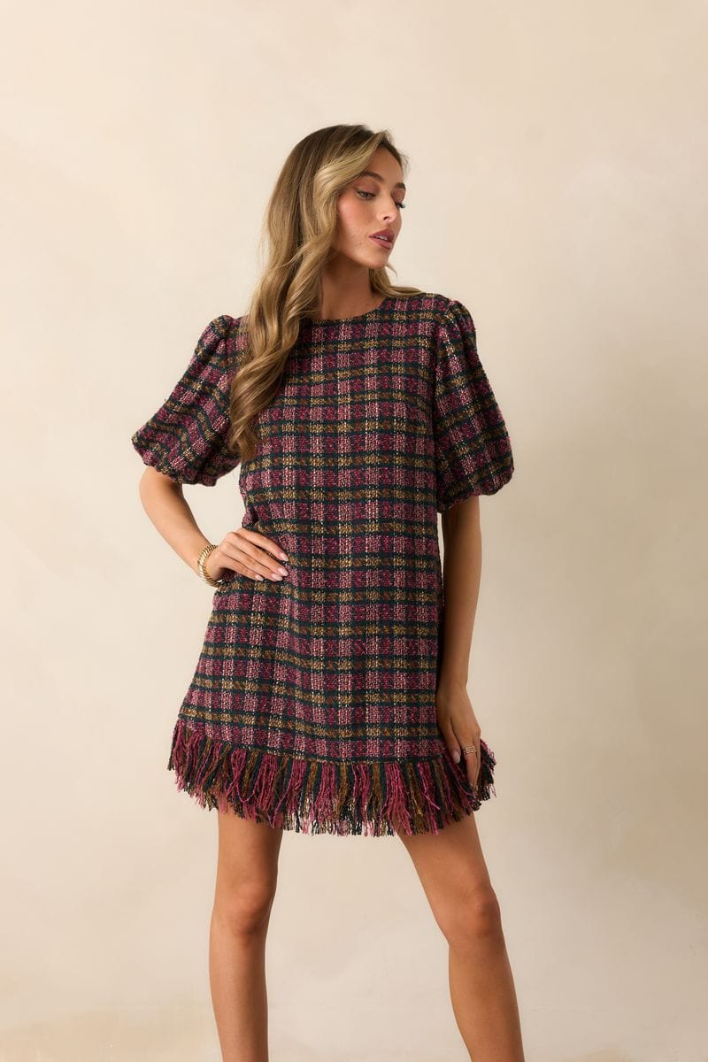 Elevate your wardrobe with the Prosperina Cecelia Dress, crafted from luxurious tweed and detailed with sophisticated fringe trim. This expertly designed dress blends classic texture with contemporary accents, offering a refined silhouette ideal for professional or upscale occasions. The fringe trim adds dynamic movement and subtle flair, enhancing the dress’s timeless elegance. Perfect for those seeking a polished appearance with a modern edge.