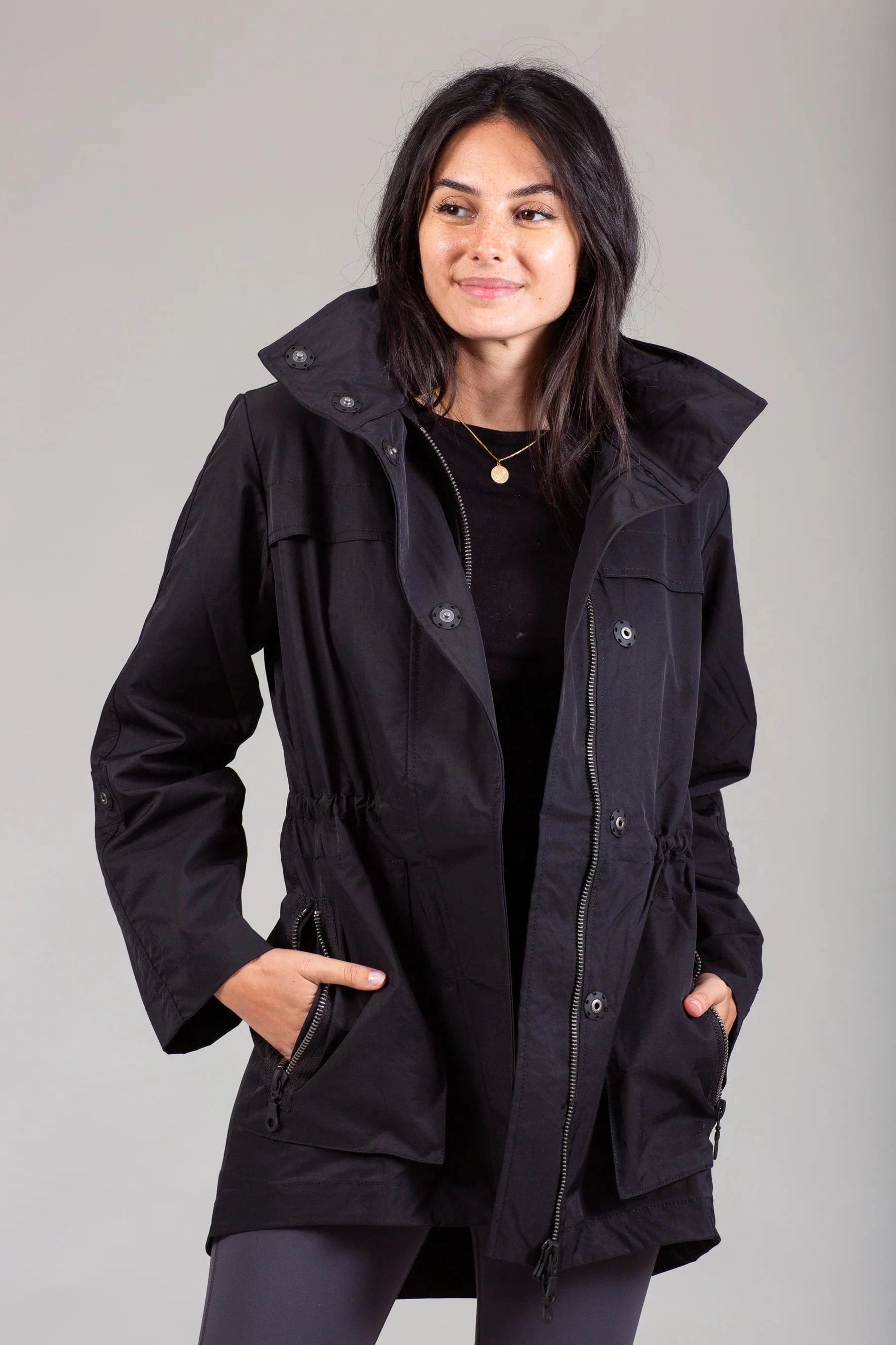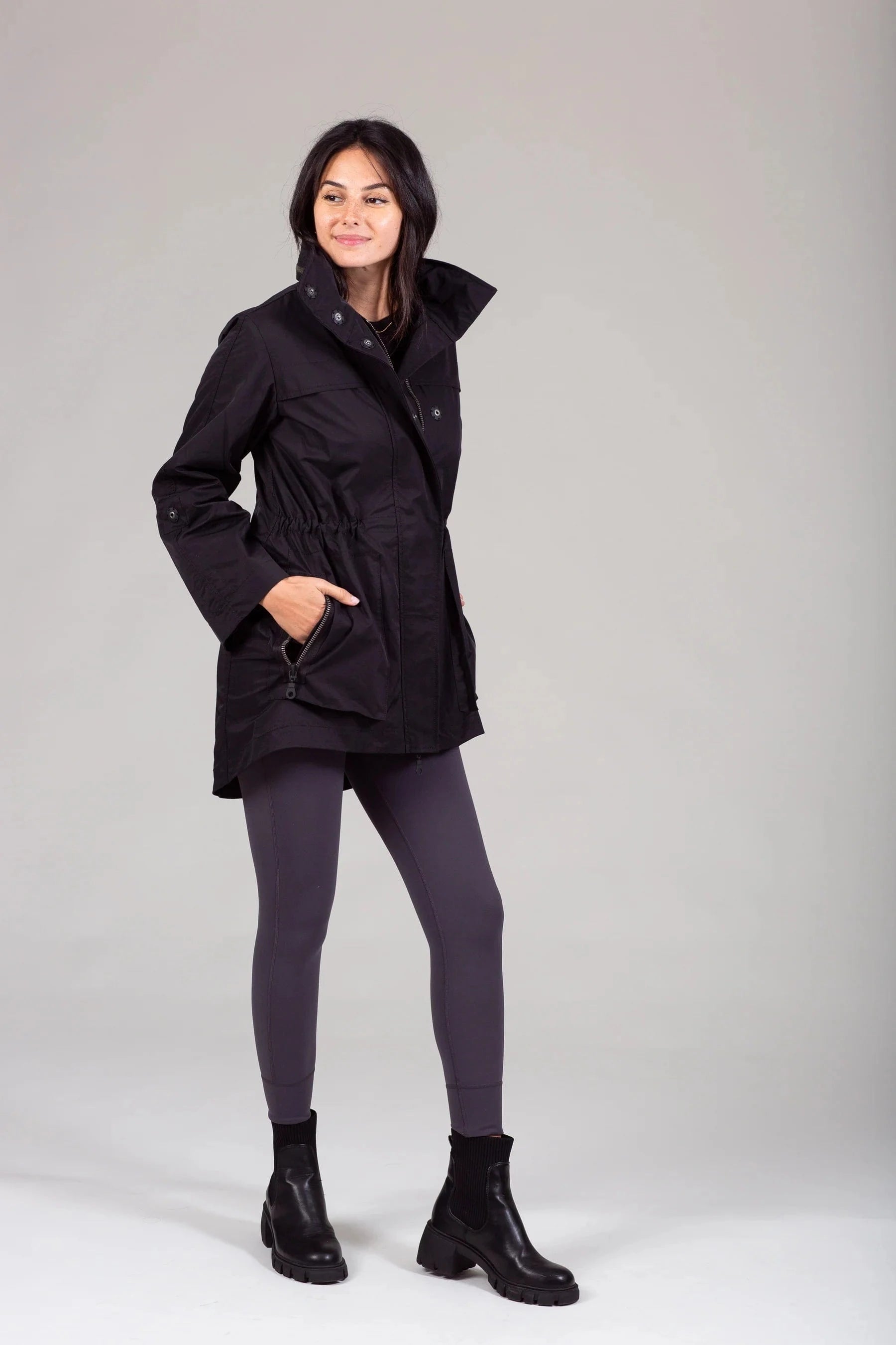 The newest Anorak Jacket is an update on this timeless bestseller. The surface of the fabric has a matte luxe appearance that is smooth and soft to the touch. Snaps and zippers are rubberized and dyed to match each jacket. Dress it up or dress it down - This Anorak Jacket is a must-have for any wardrobe. This "utilitarian" anorak jacket is the perfect cover-up - be it on the way to a "red carpet event" or an essential take-along for a serious weekend of "glamping".