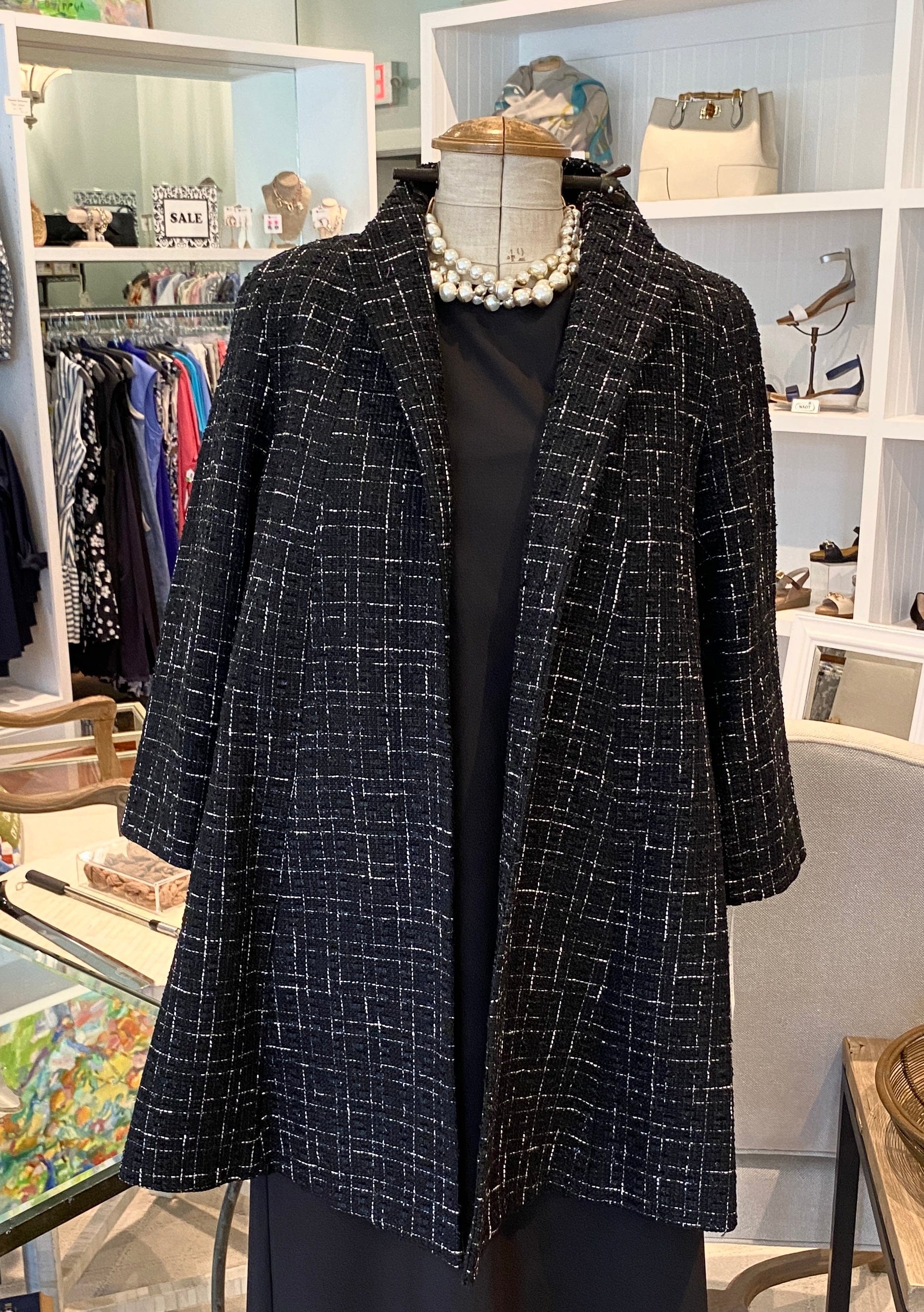 This jacket from Estelle & Finn brilliantly marries function and fashion. The lightweight cotton blend boucle makes the classic silhouette more suitable for the transitional weather while remaining chic. Wear over a blouse and trousers for an elevated office to lunch look.