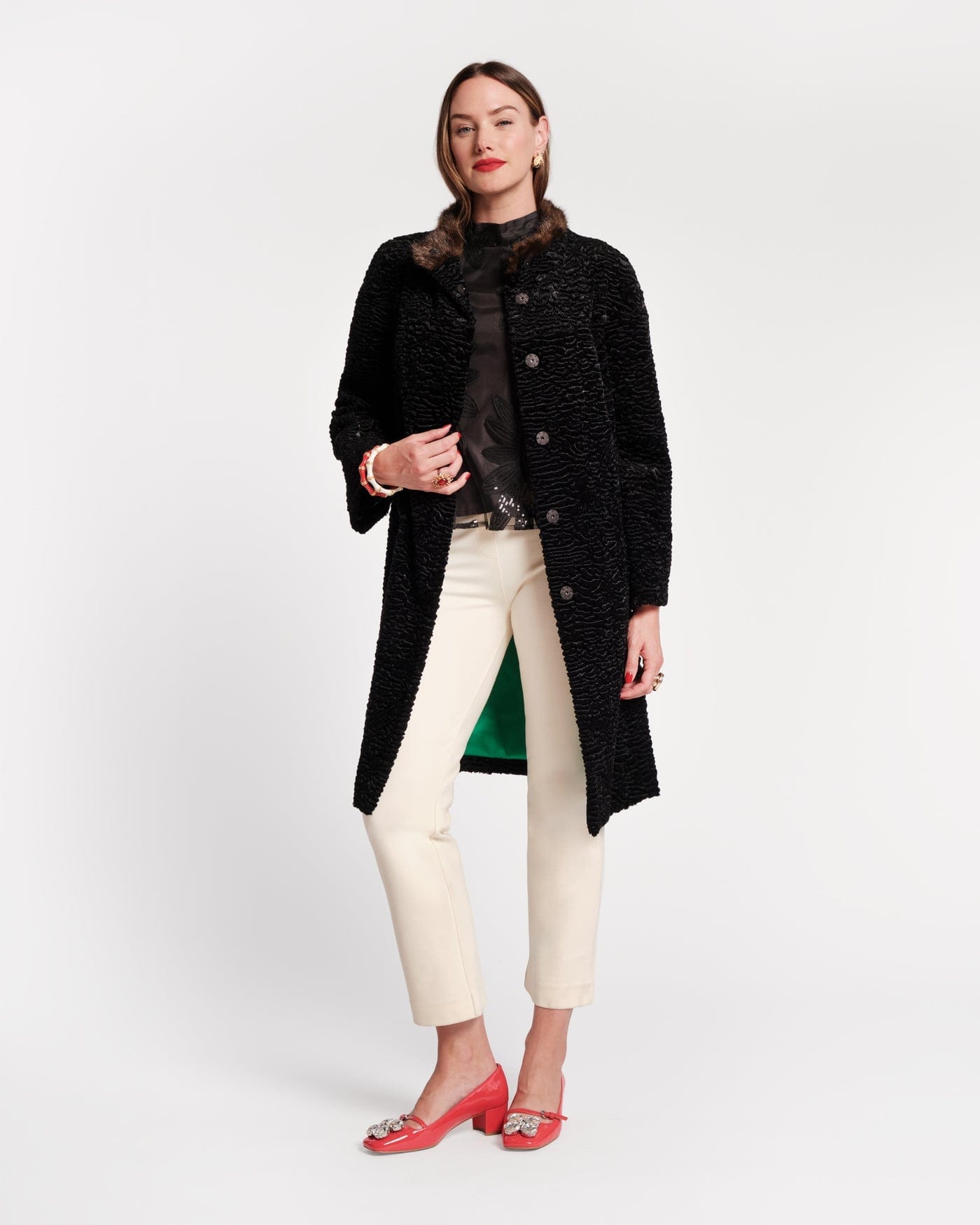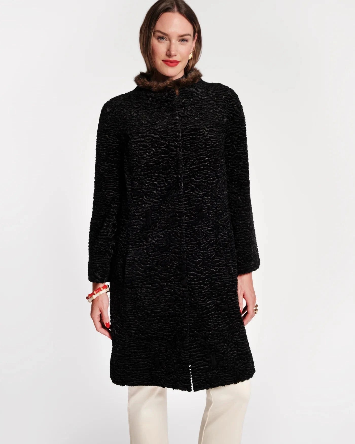 Wrap yourself in luxury with the Dame Coat. Crafted from irresistibly soft faux fur, this longline coat features a streamlined silhouette and a wide stand collar with contrast fur trim. Thoughtful details like side flap pockets and a discreet hook closure make it as practical as it is sophisticated. Sitting just above the knee, the Dame Coat can be styled over a dress or jeans, offering timeless elegance with a bold, statement-making finish.