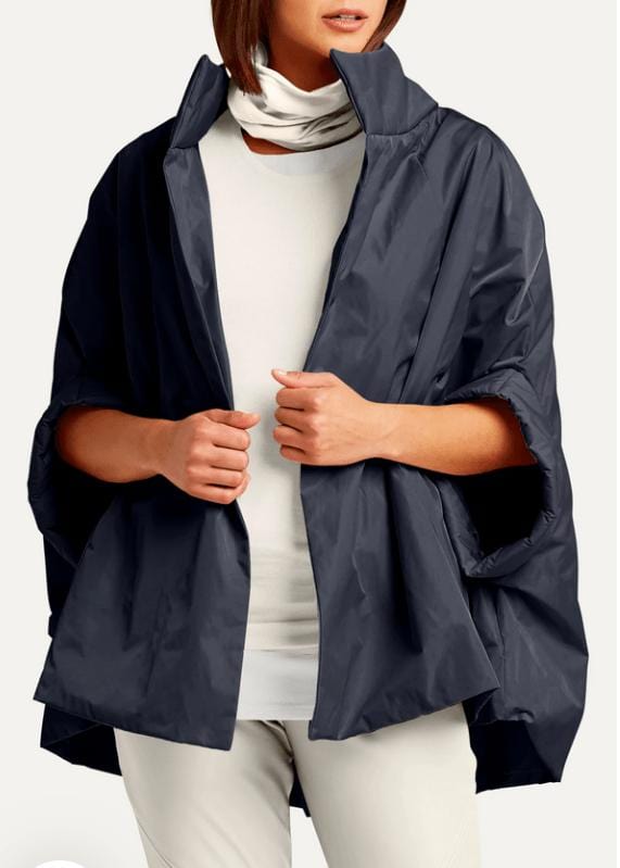 Planet by Lauren G's star-styled chic cape is a layer to love! It’s a winning combo of effortless style and symmetry. Our ultra-easy shape has a beautiful proportion and balance. Top off any look with our nylon chic cape beauty. Features pockets for everyday convenience! Packable too!
