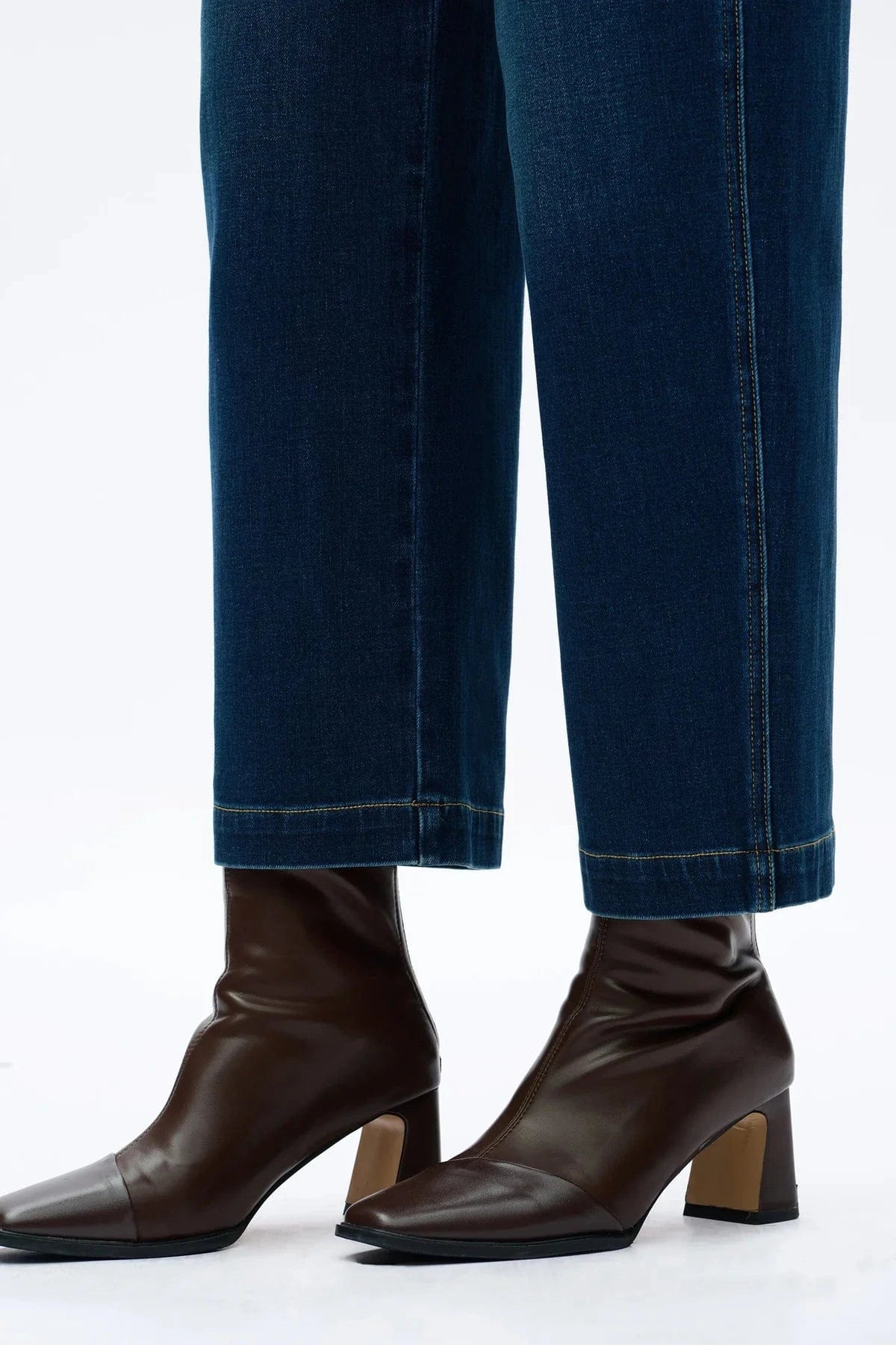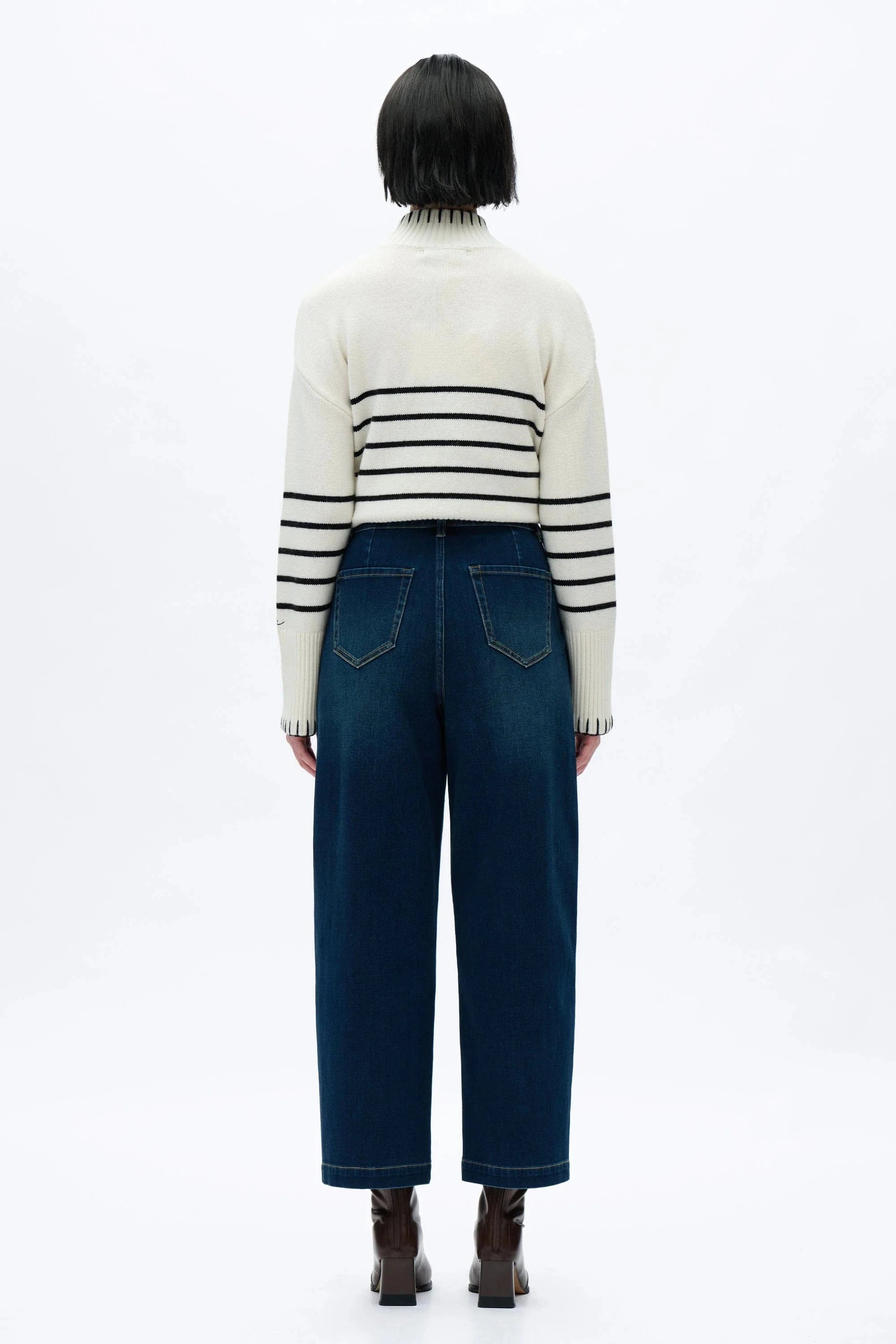 Ultra high rise harem jeans, zipper closure, side with slant pockets