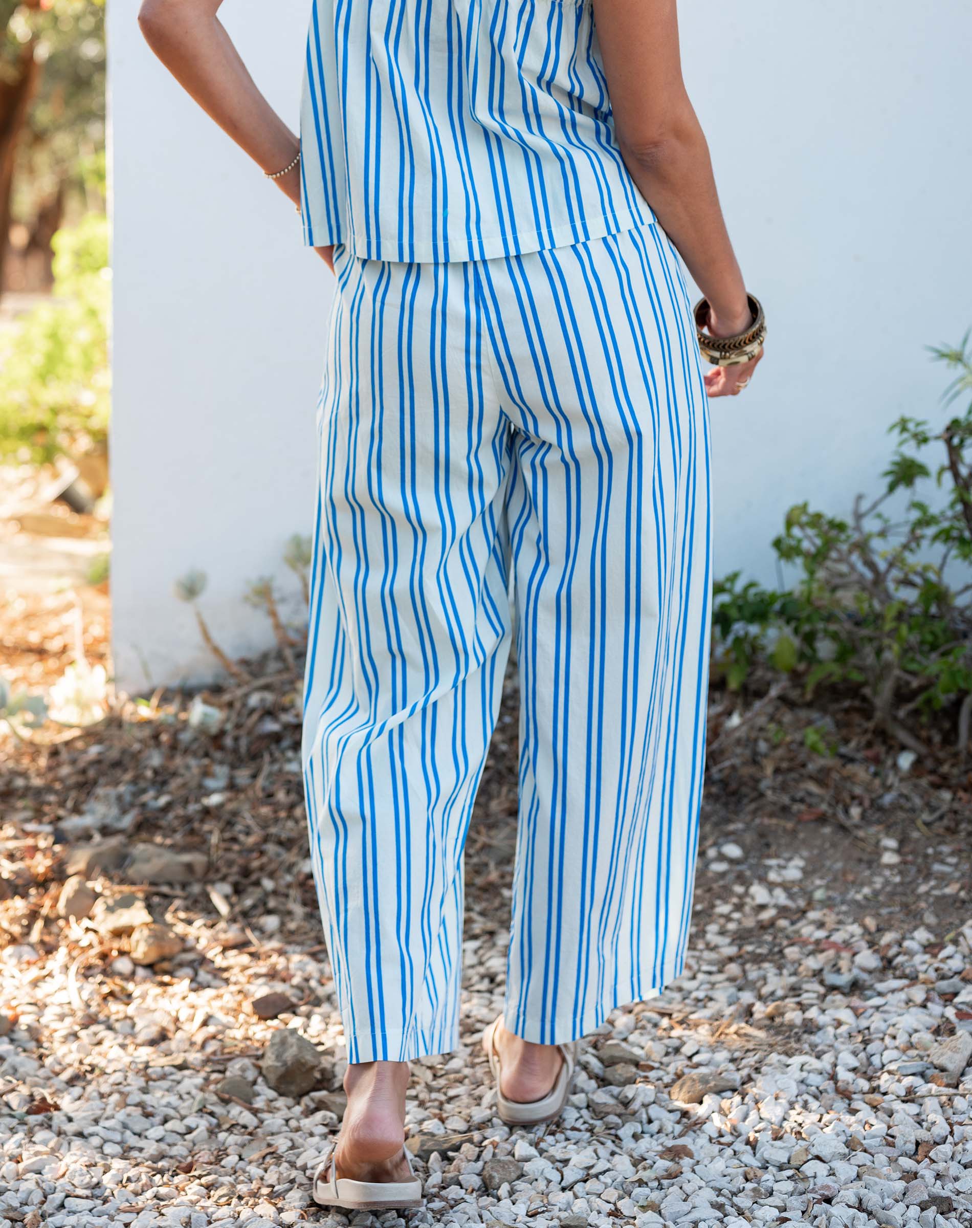 Inspired by the colorful coastal city of Porto, Portugal, the Porto Pant is bright, flowy and comfortable for activity. The stretchy waist and soft cotton poplin make it the perfect travel pant and seamlessly transfer day to night.