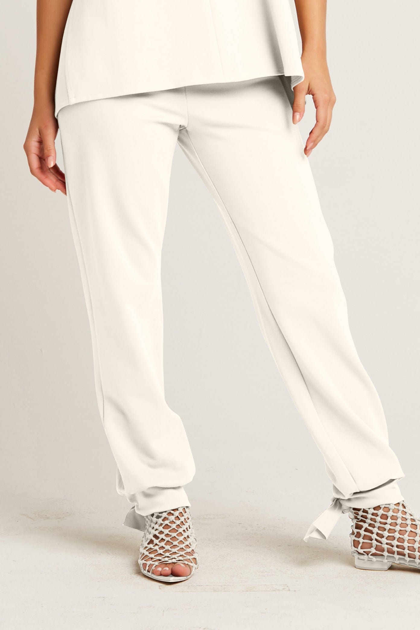 Crafted with the modern woman in mind, these pants boast a comfortable pull-on design, accentuated with charming ties at the hem. The smooth back pockets add a functional flair, making these pants a perfect blend of style and practicality. Ideal for the traveler at heart, they promise to keep you looking polished from sunrise meetings to sunset escapades.