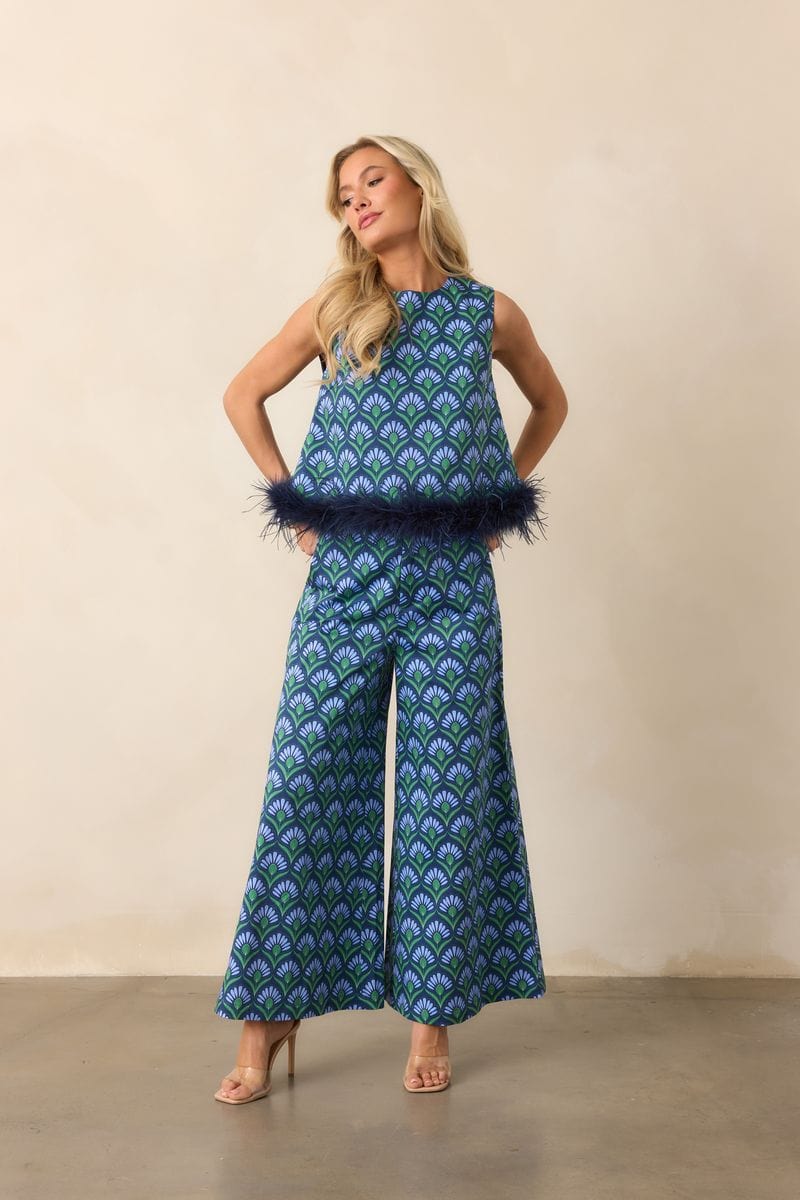 The Prosperina Barrett Pant combines bold printed fabric with a wide-leg silhouette for effortless style and comfort. Crafted to provide a flattering drape, these pants elevate your wardrobe with a sophisticated yet relaxed fit. Perfect for both casual and professional settings, they offer versatile wearability while making a distinctive fashion statement.