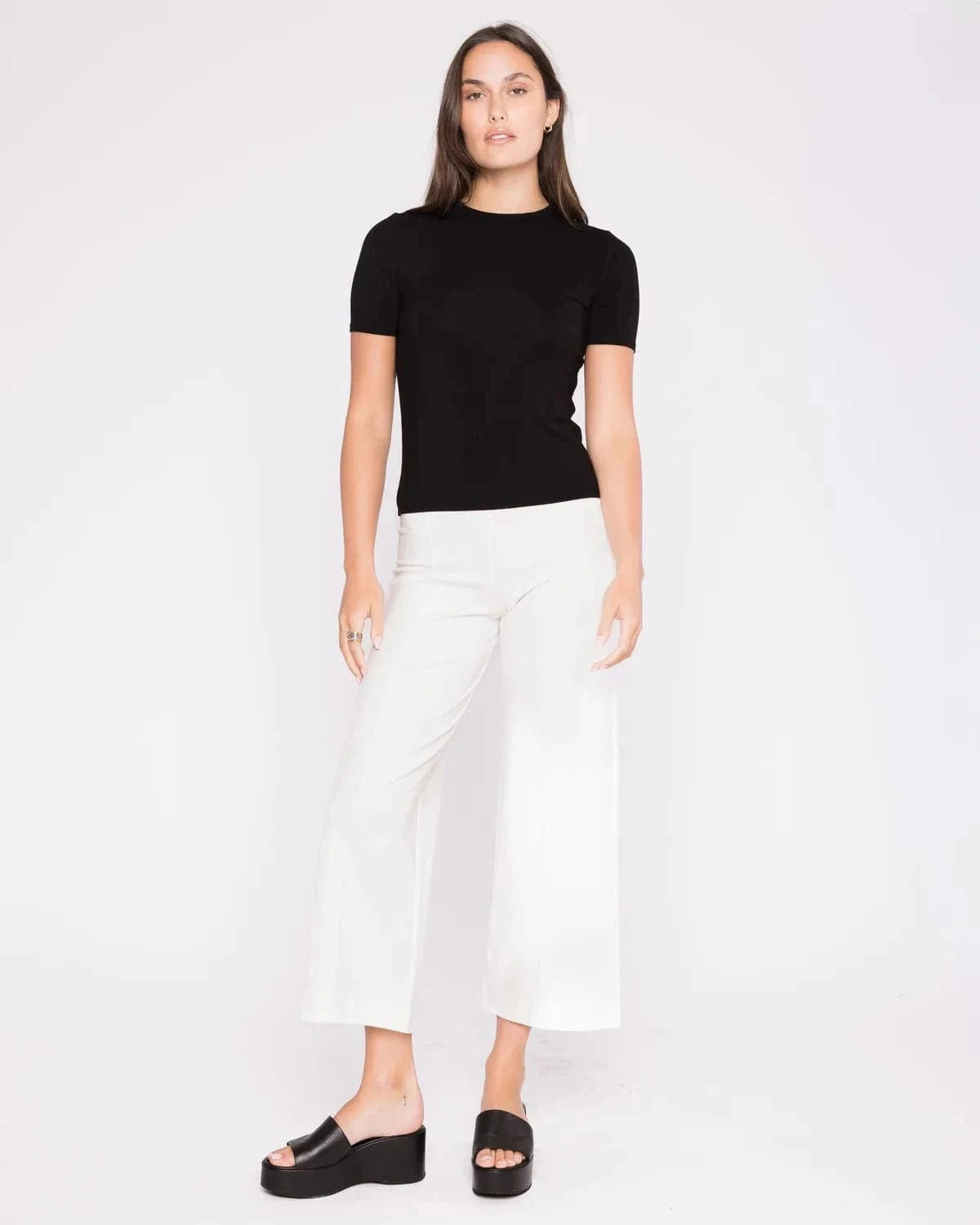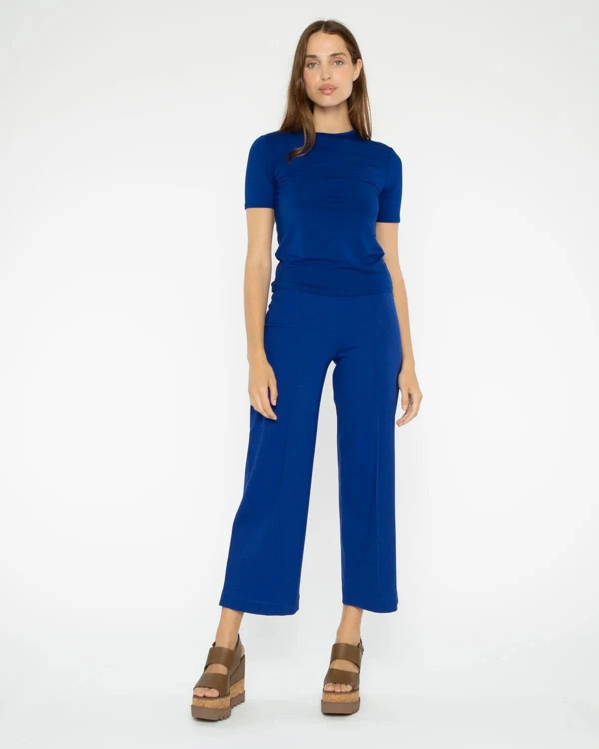 Ripley Rader has taken the pull-on pant that broke the internet and reimagined it into the perfect straight leg silhouette but CROPPED. This high-waisted, classic straight leg pant is made from luxurious ponte knit, offering the structure of tailored fabric with the comfort of a soft knit. The elongated, clean lines and elevated waistline are designed to be slimming and elongating, flattering every body type and height.