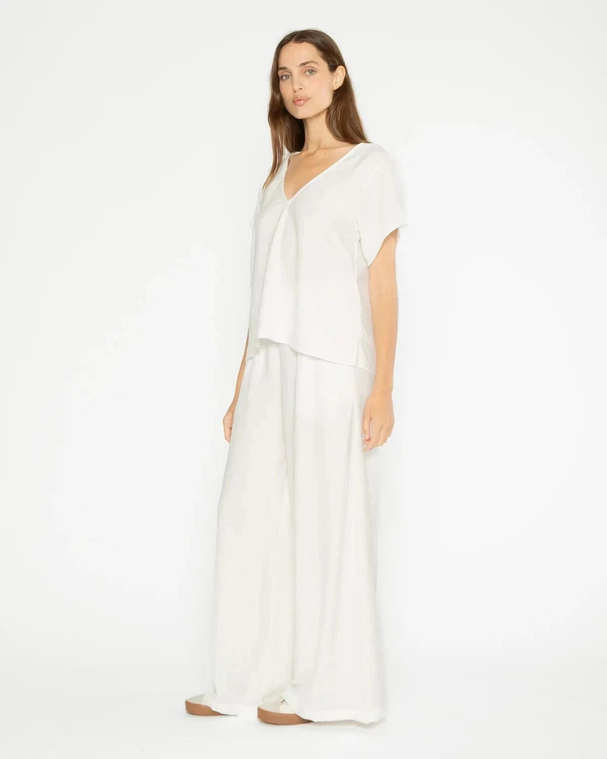 The RR version of the everyday pant. Made from wrinkle-free satin crepe. Dress it up or down. Elastic Waist, pockets and perfect drape. It's loungewear, elevated.