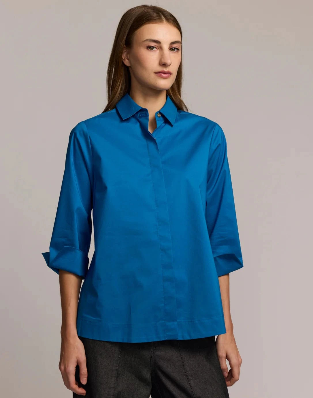 An instant classic, the Xena. Hinson's Stretch Polished Cotton is a refined blend of cotton, polyester, and spandex, offering the perfect balance of comfort, durability, and stretch. This imported fabric has a smooth, polished finish that elevates your look while ensuring ease of movement. Designed for everyday versatility, it’s machine washable and dryer friendly, making it as practical as it is stylish.