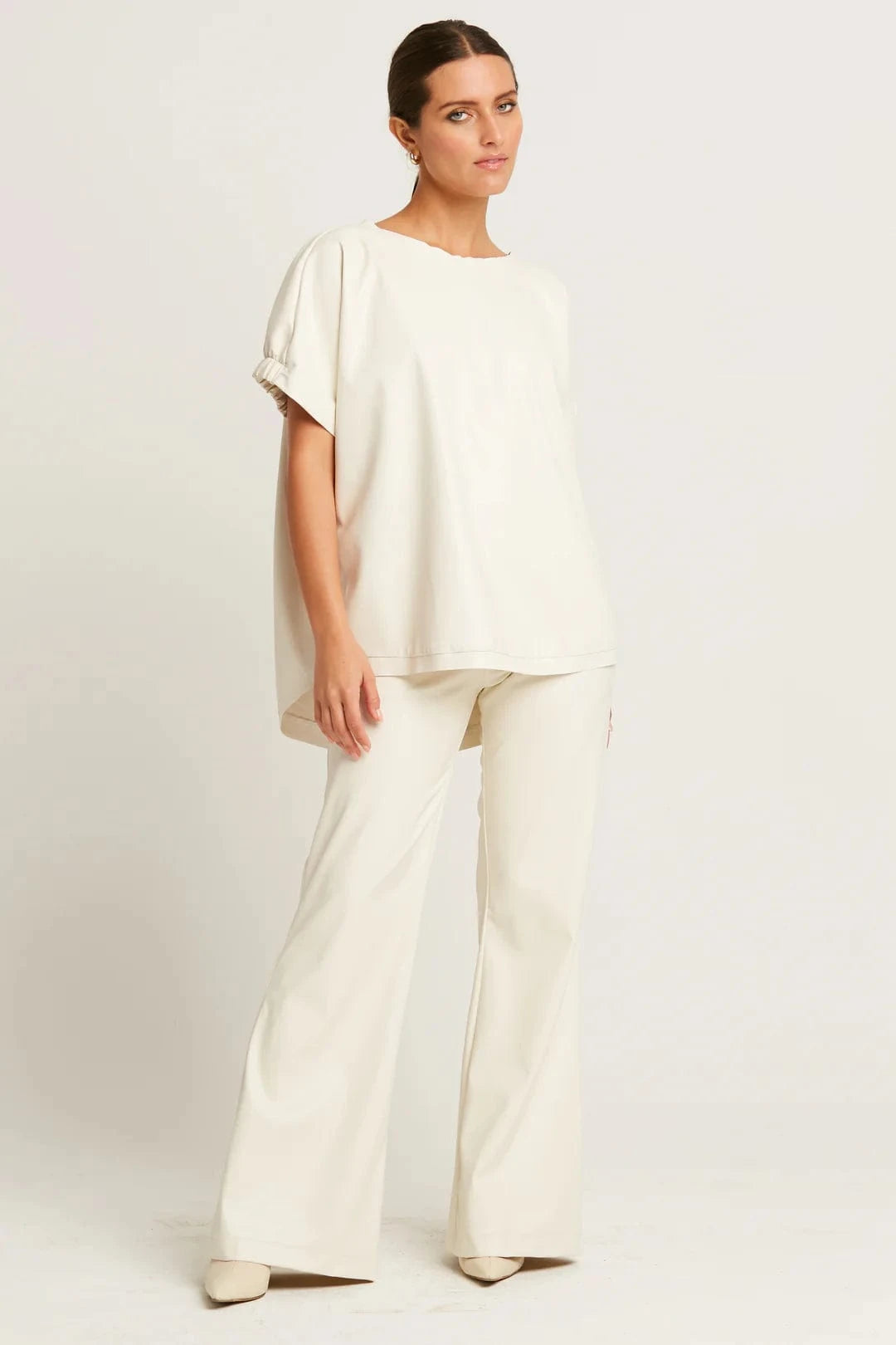 Elevate your wardrobe with the Vegan Leather Fashion Tee, an edgy take on Planet's classic silhouette. Designed with the same effortless charm as its Matte Jersey and Handkerchief Linen counterparts, this piece adds a sleek, modern twist to your styling repertoire.