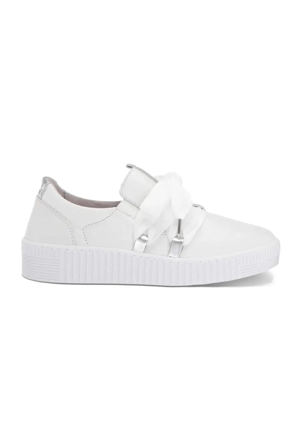Spruce up your casual wardrobe with these Gabor white sneakers with tie. Their rounded toe and generously-sized laces lend a touch of classic sophistication, while their textile lining and comfortable footbed provide all-day comfort. Finished with a long-lasting man-made outsole.