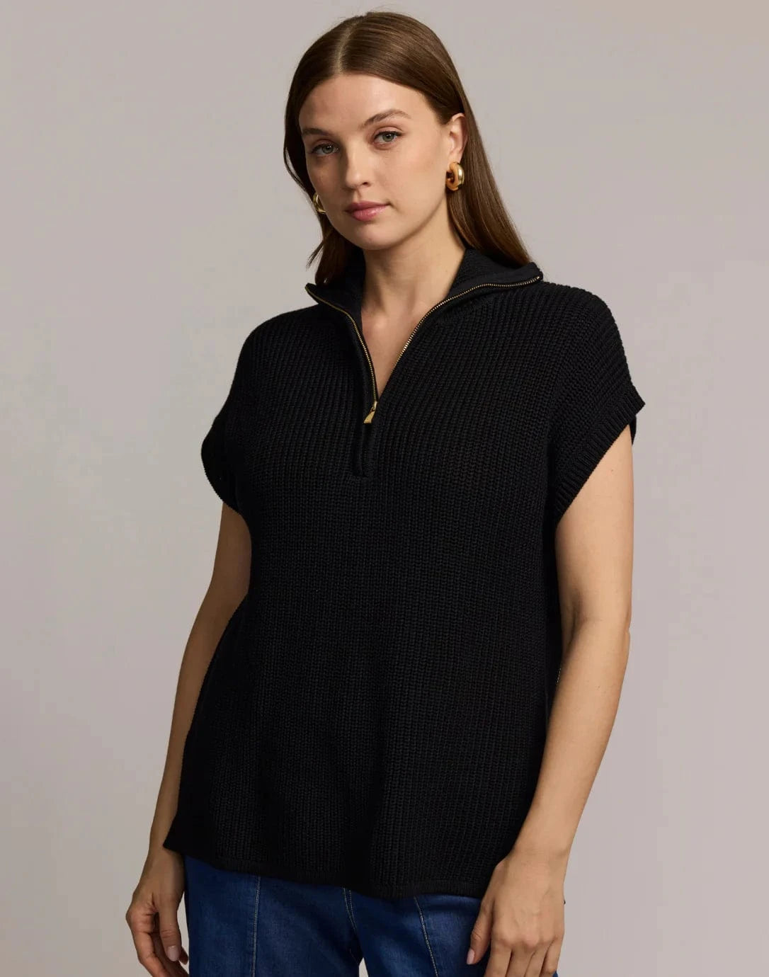 Gold tone half-zip collar