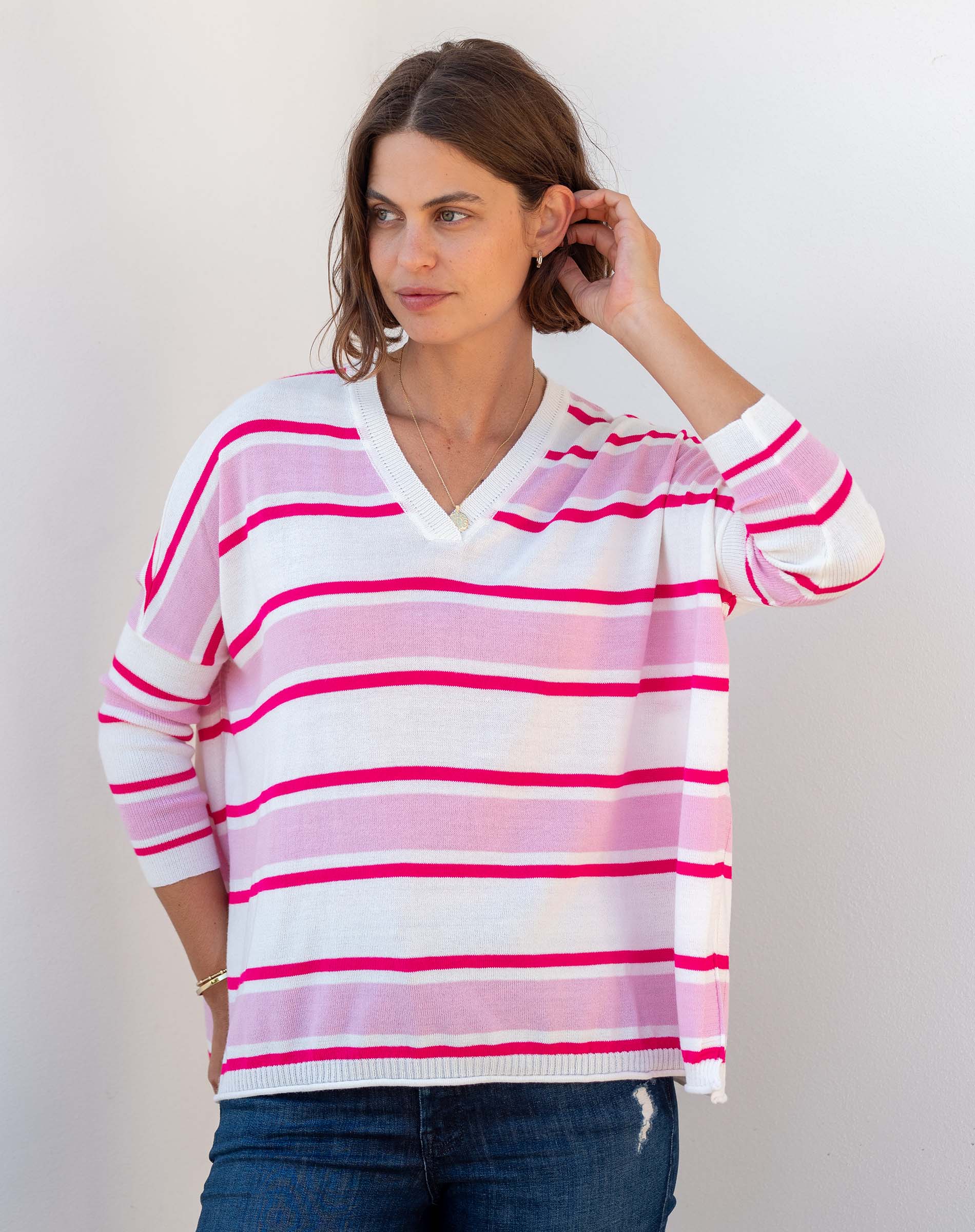 Wear it the way you like it, this V-Neck Sweater is undeniably a go-to in any season. Whether you’re on the move, in need of a quick change or looking to dress effortlessly chic, this is the sweater. Layered and worn on its own, this V-neck sweater is enough to be “the outfit“ and understated enough to never “overdo it.” With the signature Catalina split sides and contoured shoulders into a tapered sleeve, you will find that this is truly a year-round closet hero.